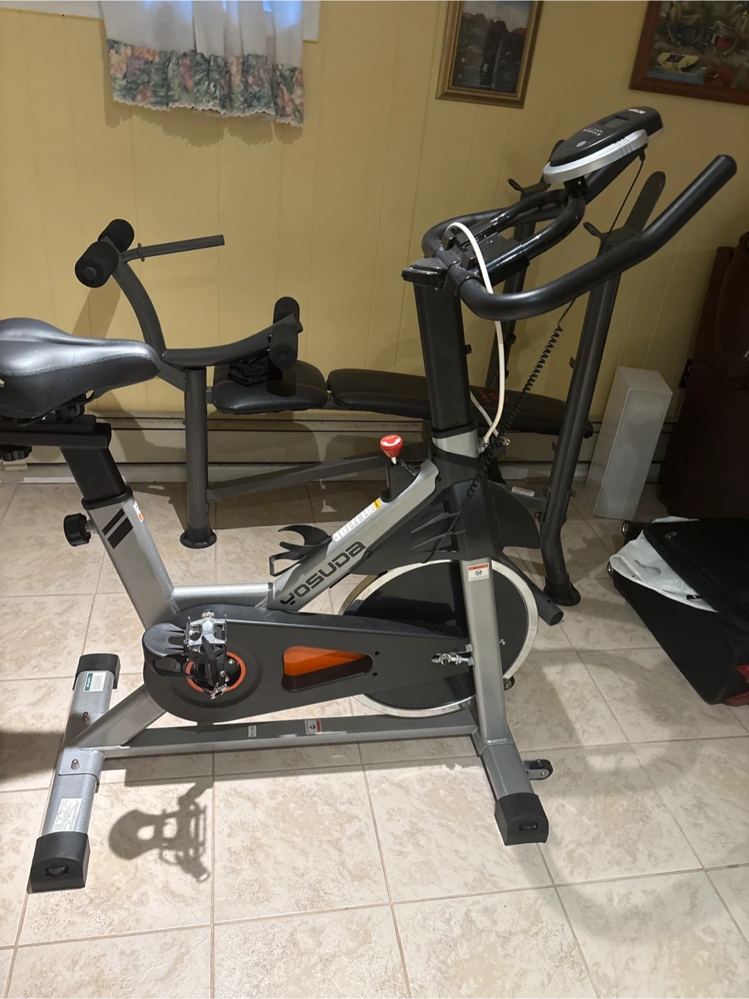 Selling a Yosuda indoor stationary bike! Great for getting a workout in at home. It's in good condition and ready for a new owner