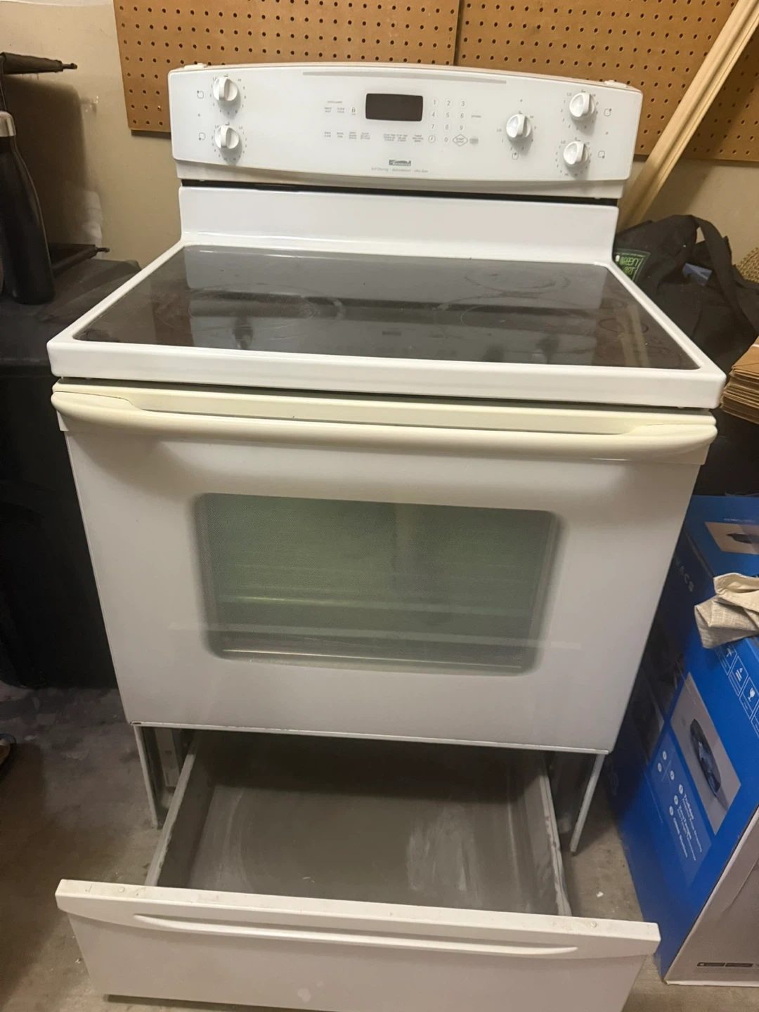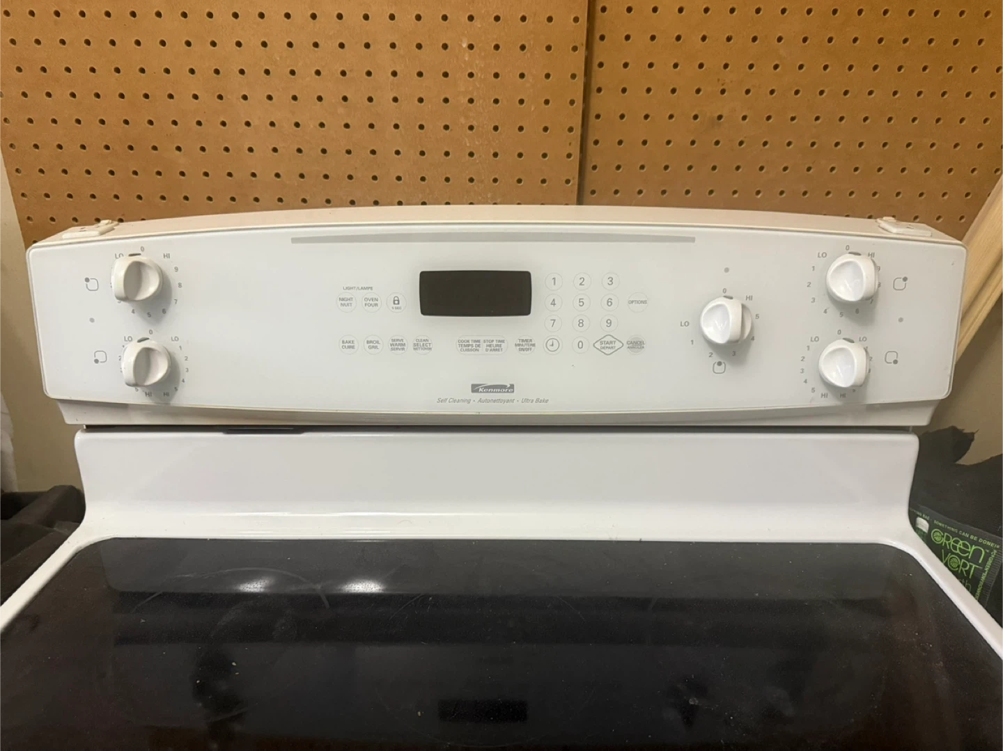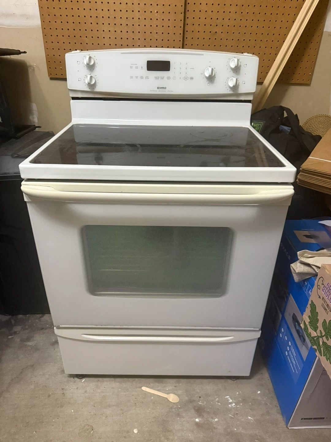 📍 Pick up in Whitby – NEED GONE IMMEDIATELY Selling a clean Kenmore electric stove with a smooth glass cooktop and digital control panel. We haven’t tested it because we don’t have the right plug at this location, so it’s being sold AS-IS. Perfect for: ✔️ Landlords ✔️ Appliance repair techs ✔️ Anyone needing a budget stove ✔️ Parts or refurbishment ⸻ ⭐ Condition • Glass top is clean with no cracks • Oven interior is clean • Racks included • All knobs/buttons intact • Exterior in good shape • Not tested → priced to go