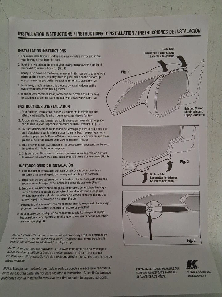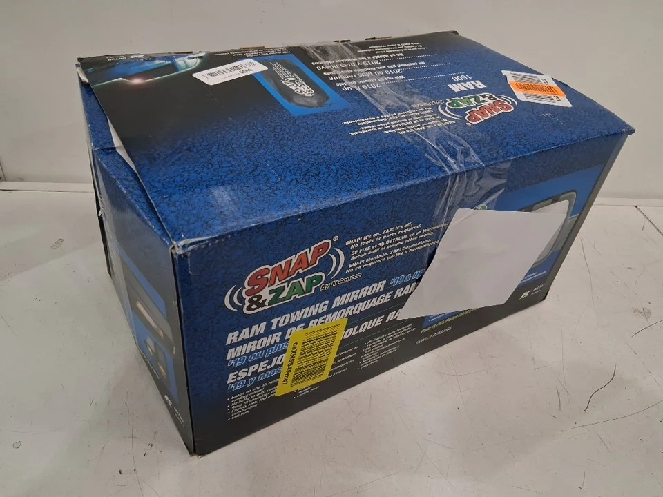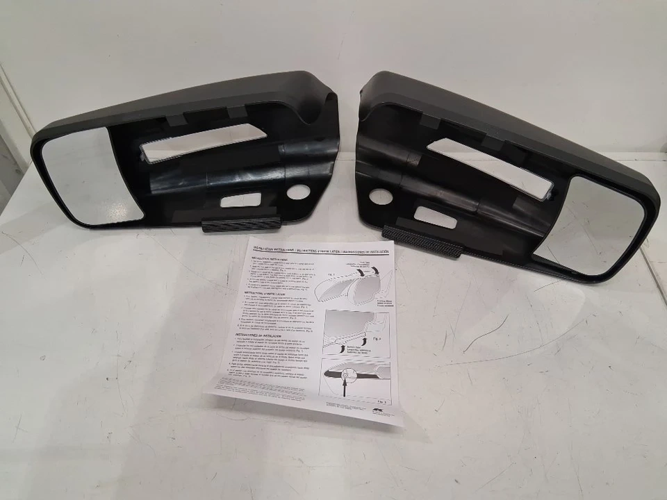 These Snap & Zap towing mirror extensions fit 2019 and up Dodge Ram 1500 non-classic models, providing an extended field of view for safer towing, complete with installation instructions. These mirrors are practically new, and come in their original packaging!