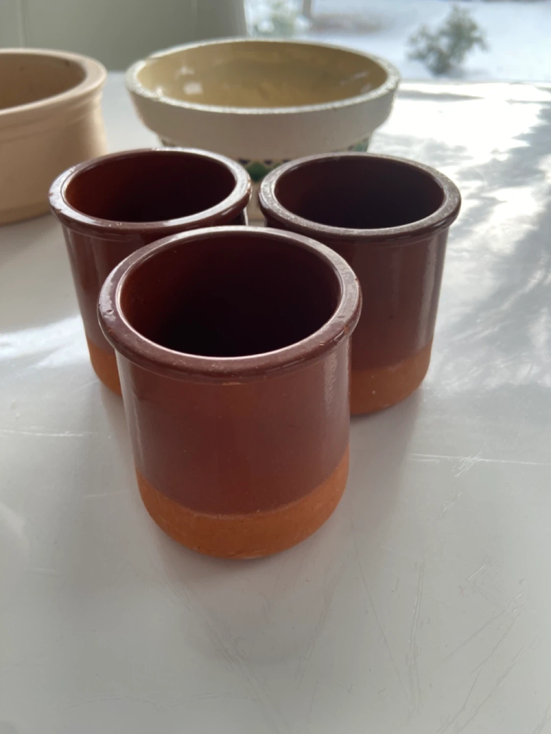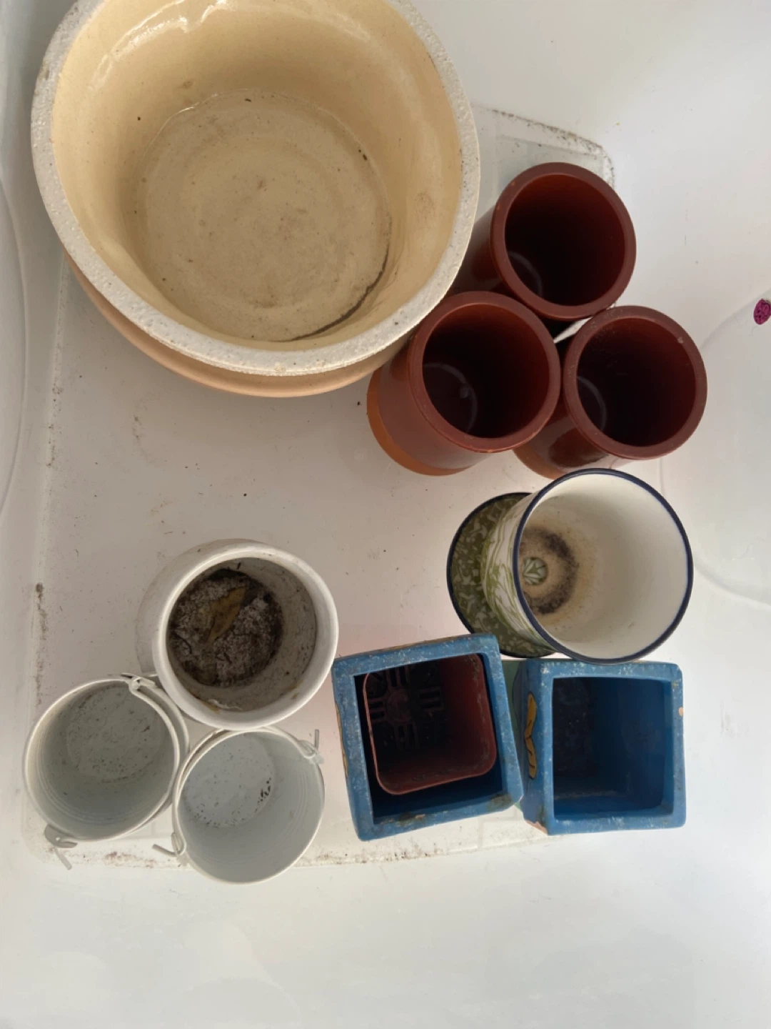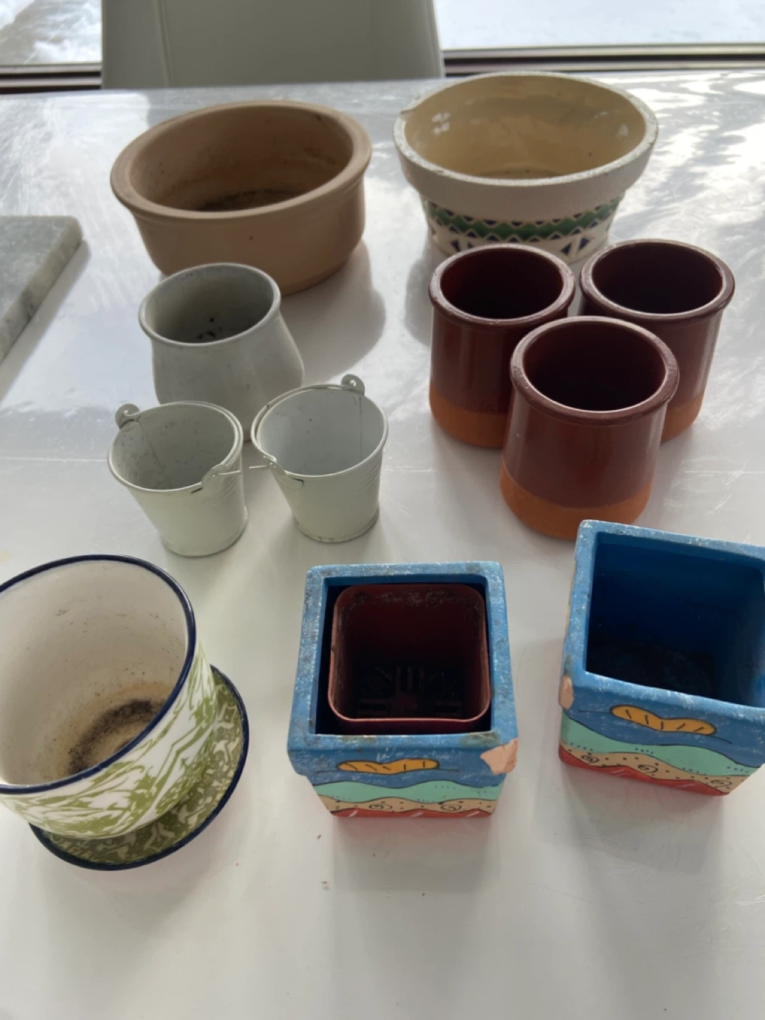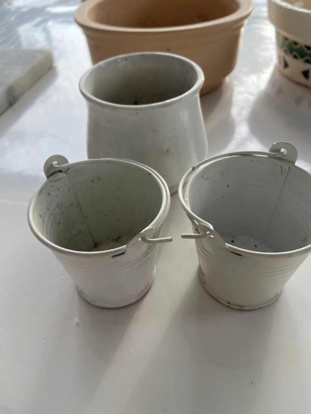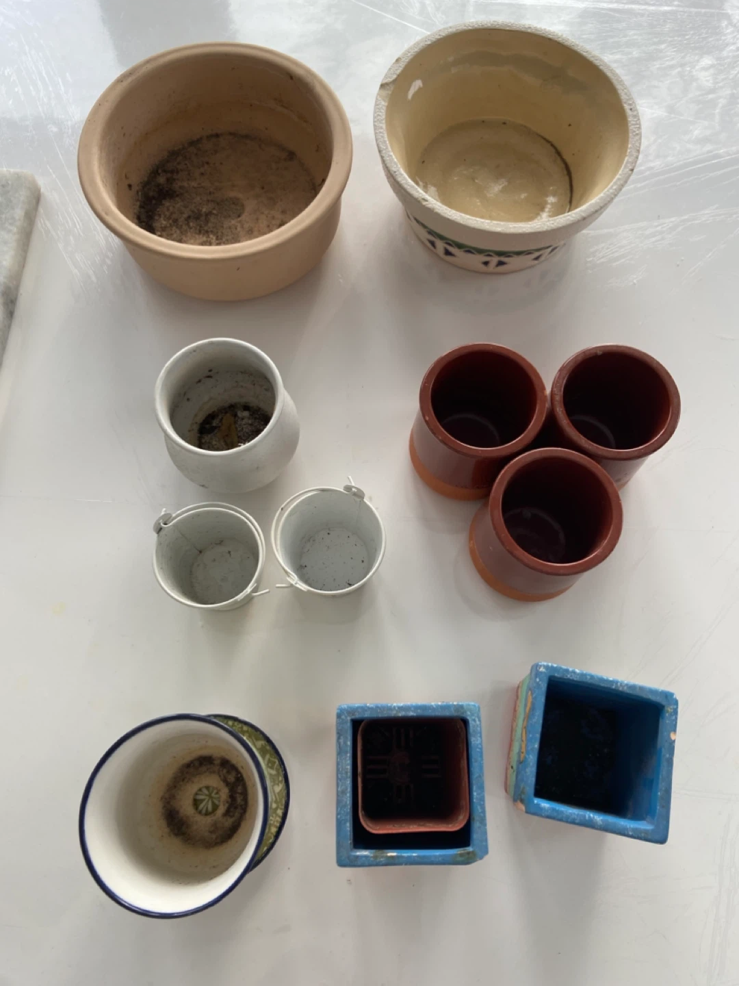 A collection of small pots for succulent plants.