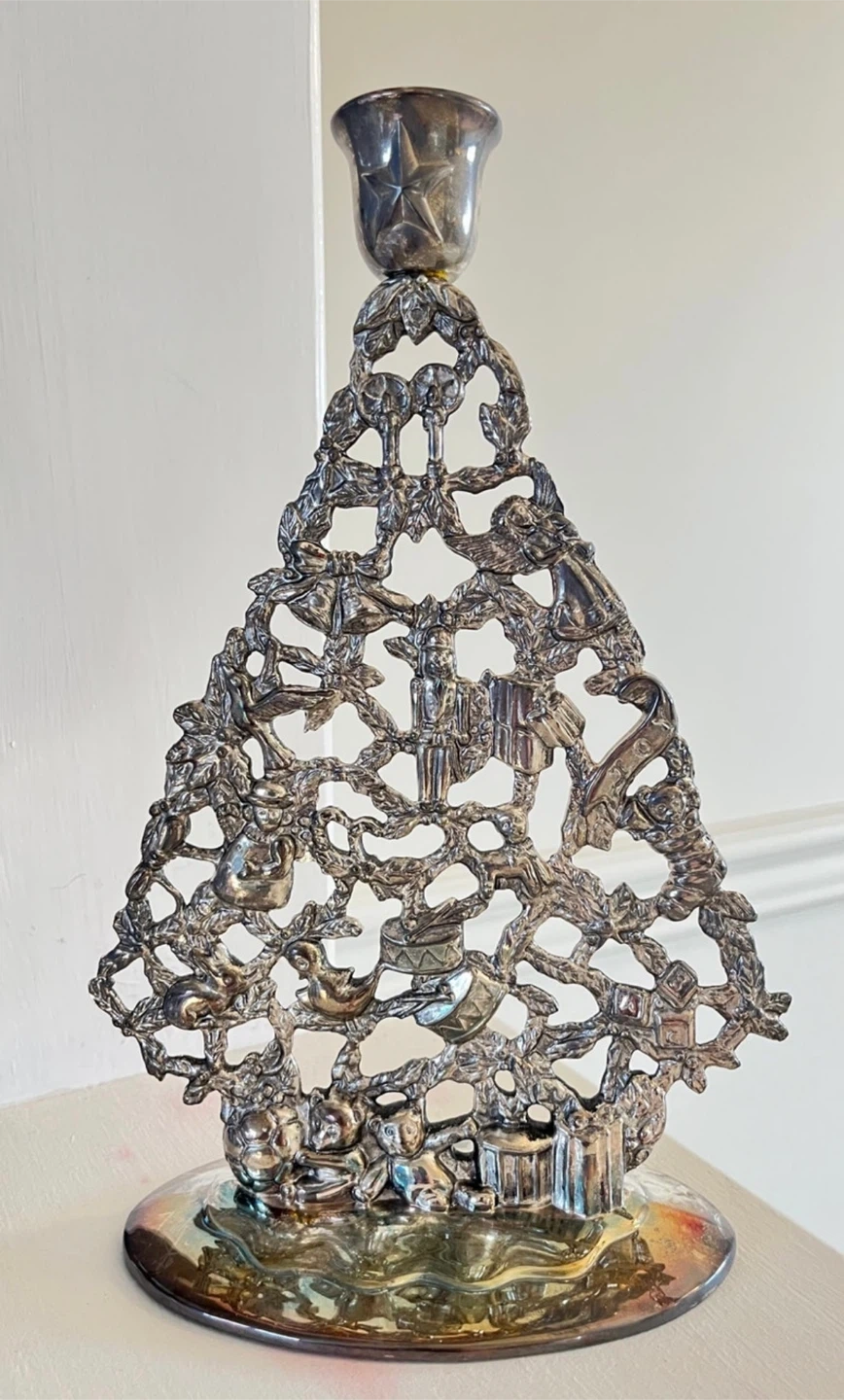 A collection of vintage pewter decorative items. Includes candle holders, plates, bowls, and a teapot with a tray. Perfect for adding a touch of classic charm to your home!