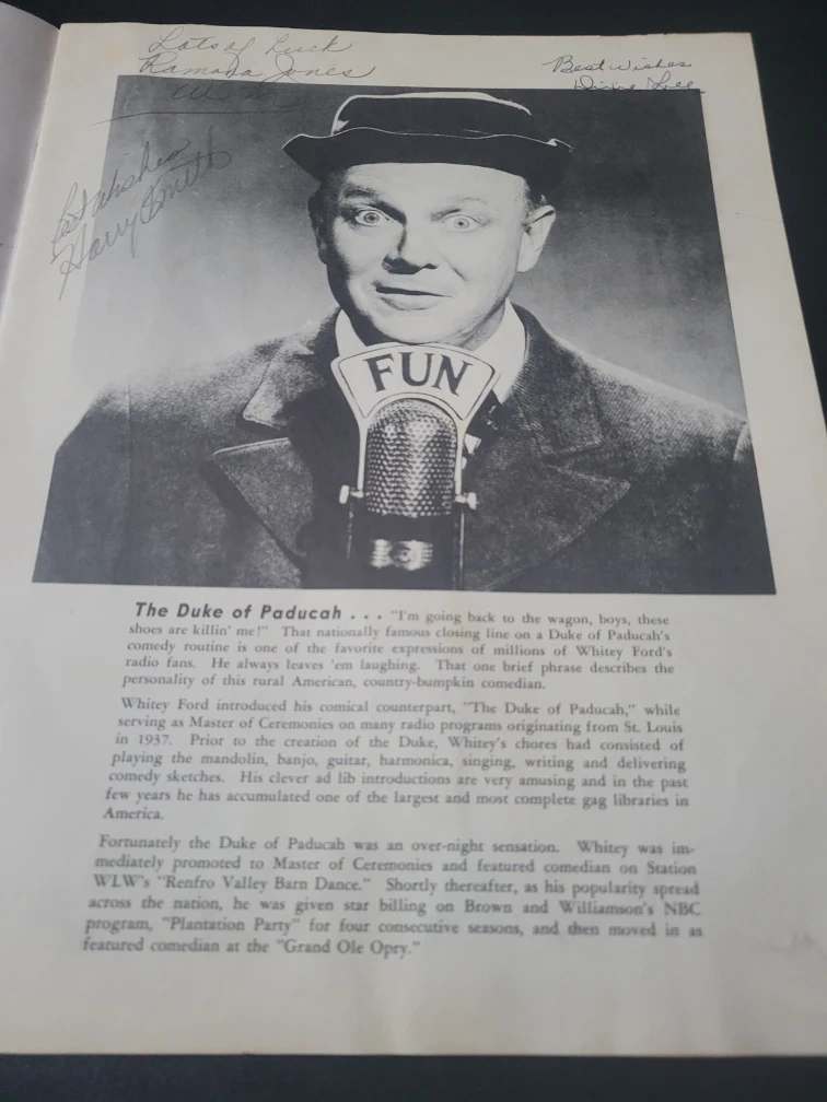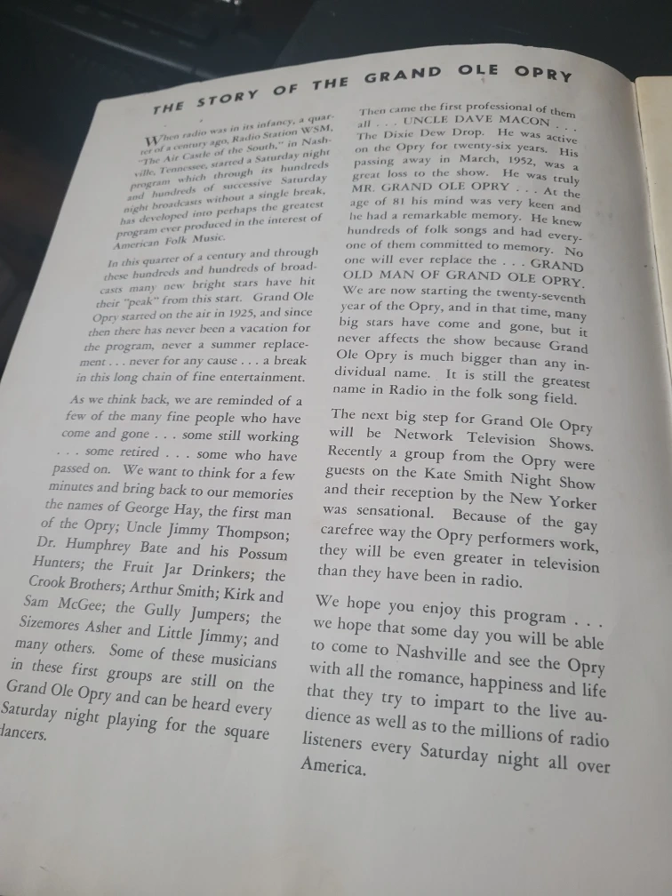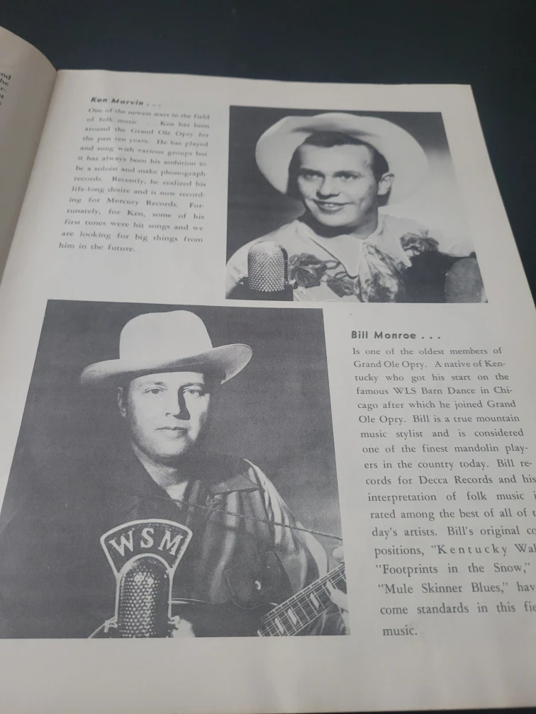 Selling a vintage Souvenir Picture Program from the Grand Ole Opry. It features stars from the radio station WSM in Nashville, Tennessee. A piece of country music history! Antique program book Country Nostalgia.