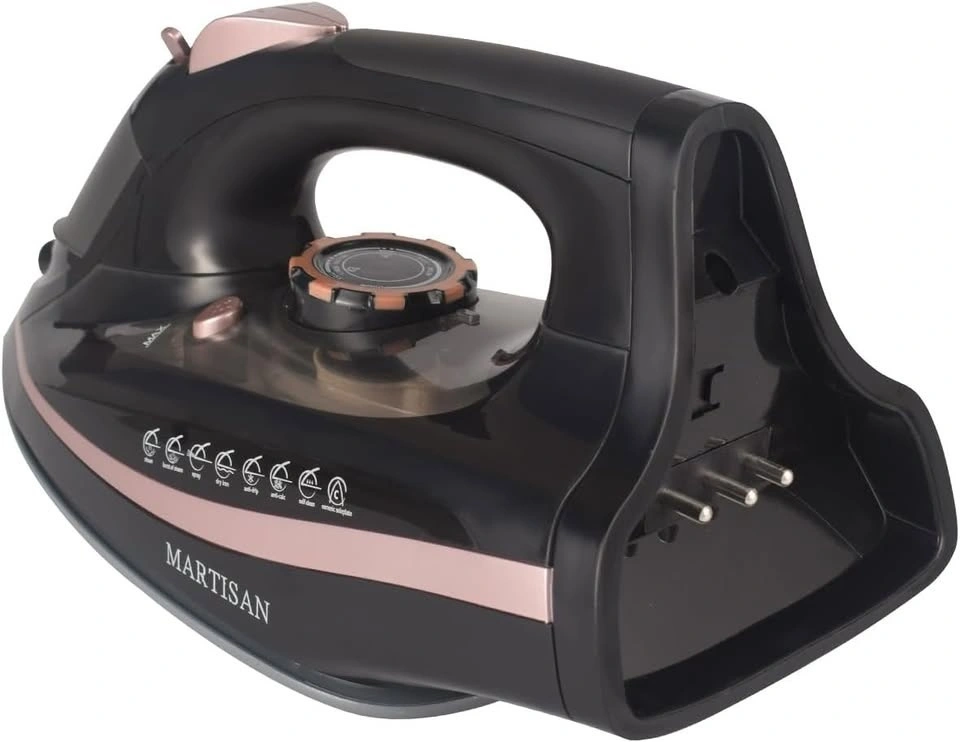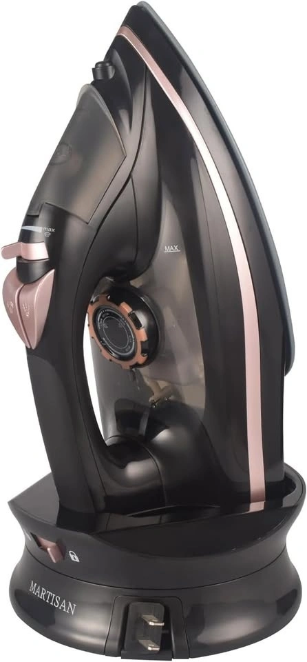 Cordless Steam Iron, with Retractable Cord, Power Charging Base with Carry Lock Easy Storage, 1500W, Ceramic Sole plate for Clothes, MARTISAN