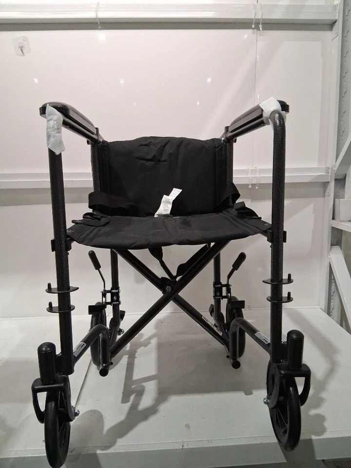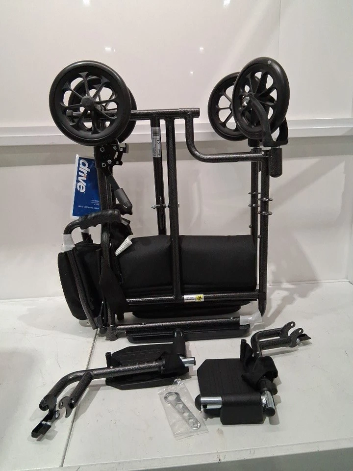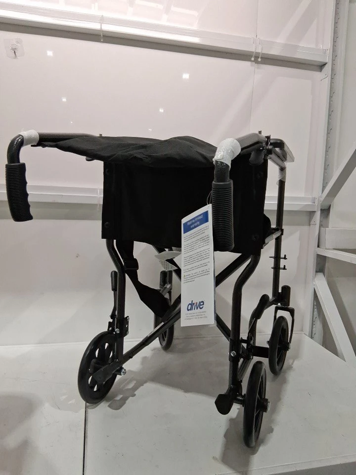 I'm offering a new Drive Transport Wheelchair, designed for easy mobility and convenience. This lightweight wheelchair features a compact design, making it ideal for travel and storage. It has a sturdy frame and comfortable seating, ensuring a smooth ride for the user.