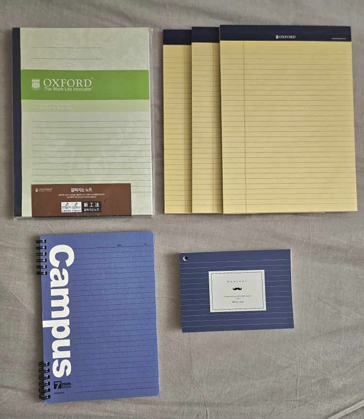 Selling a bundle of notebooks! Includes an Oxford premium notebook, some Oxford loose leaf paper, a Campus notebook, and a small note card