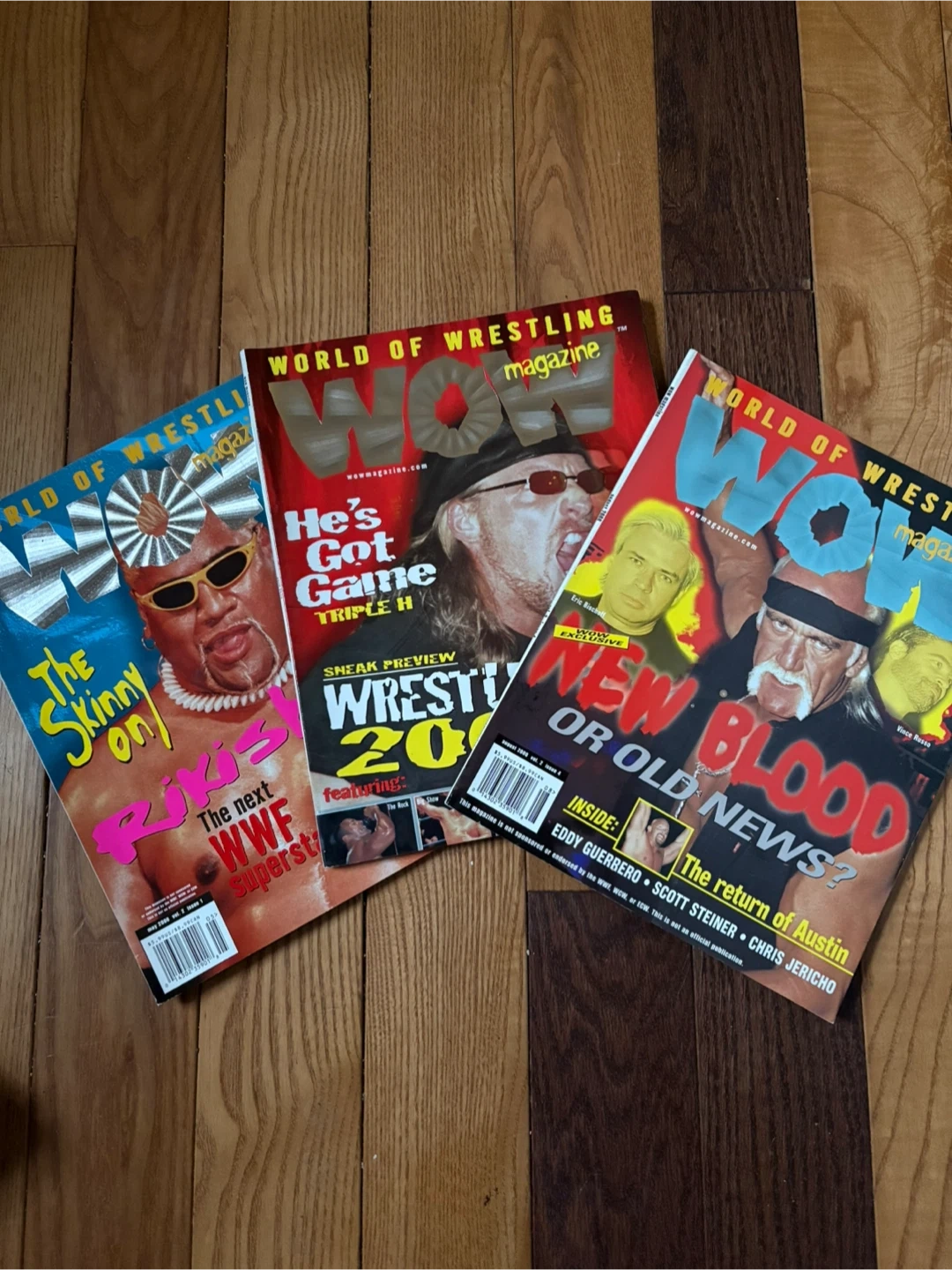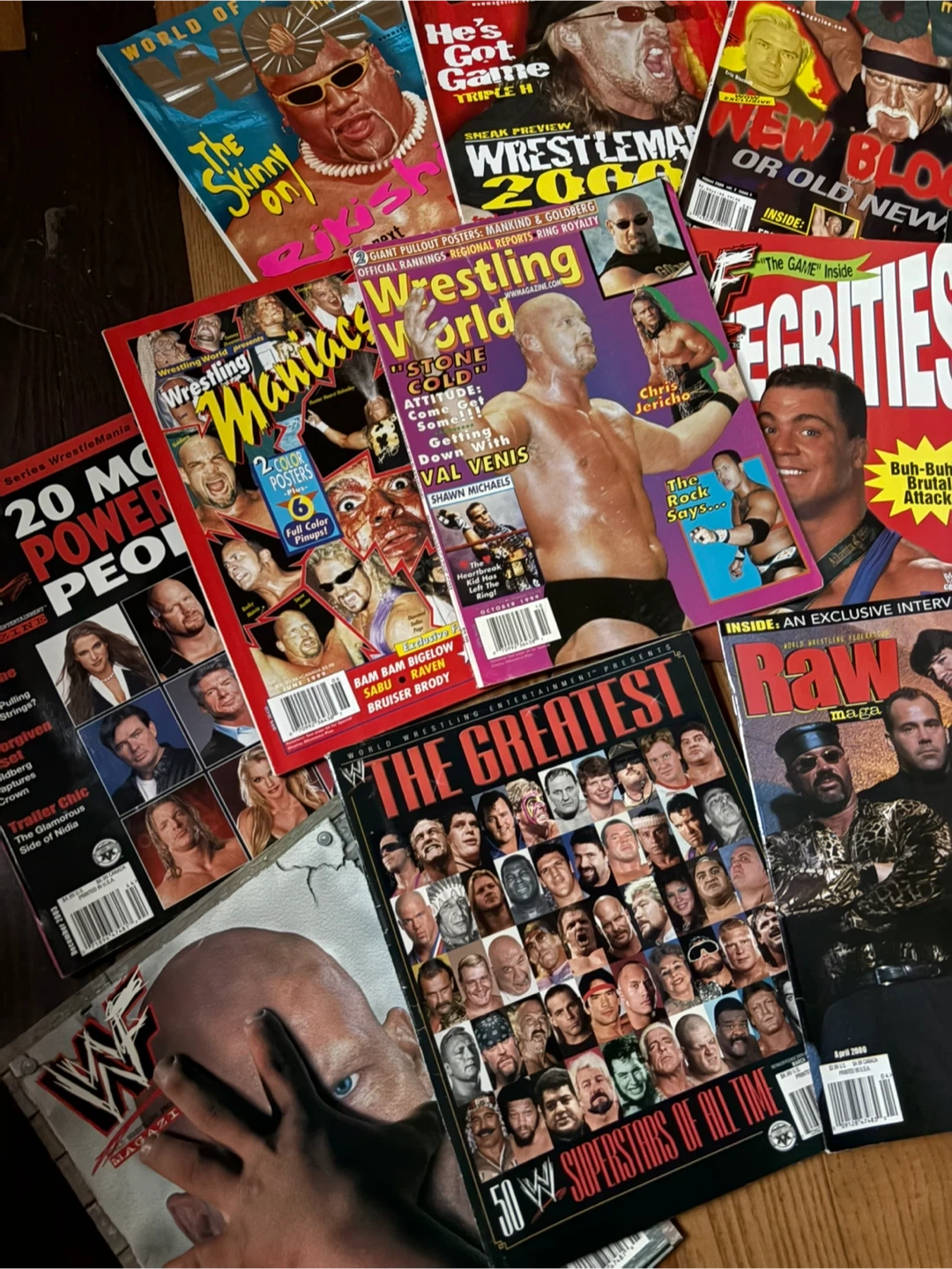 Selling a collection of WWF/WWE wrestling magazines. A blast from the past for any wrestling fan! No water damage! No missing pages! Includes posters! From 1999-2004!