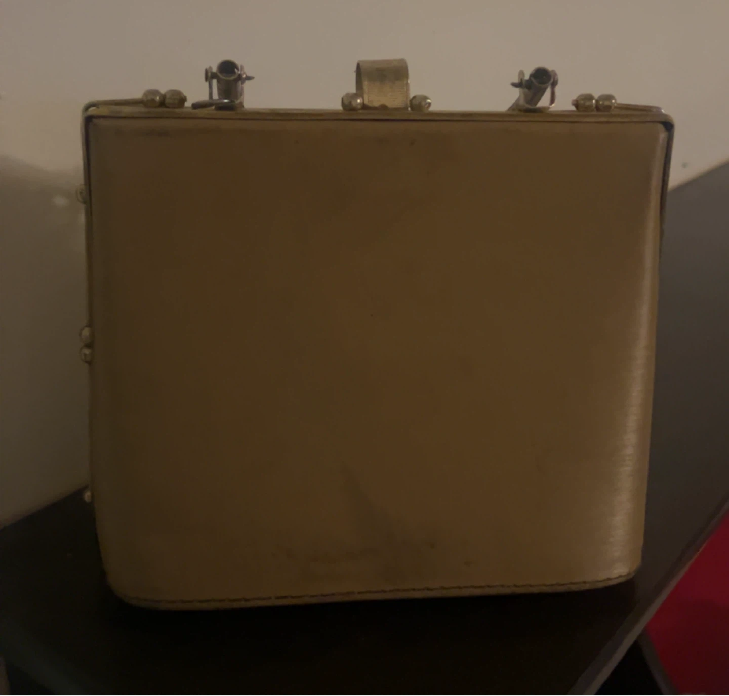 This is a Lodis Elena Mini Square Box Bag in great condition! It's a stylish and compact bag, perfect for carrying your essentials. The unique square shape and elegant design make it a standout accessory