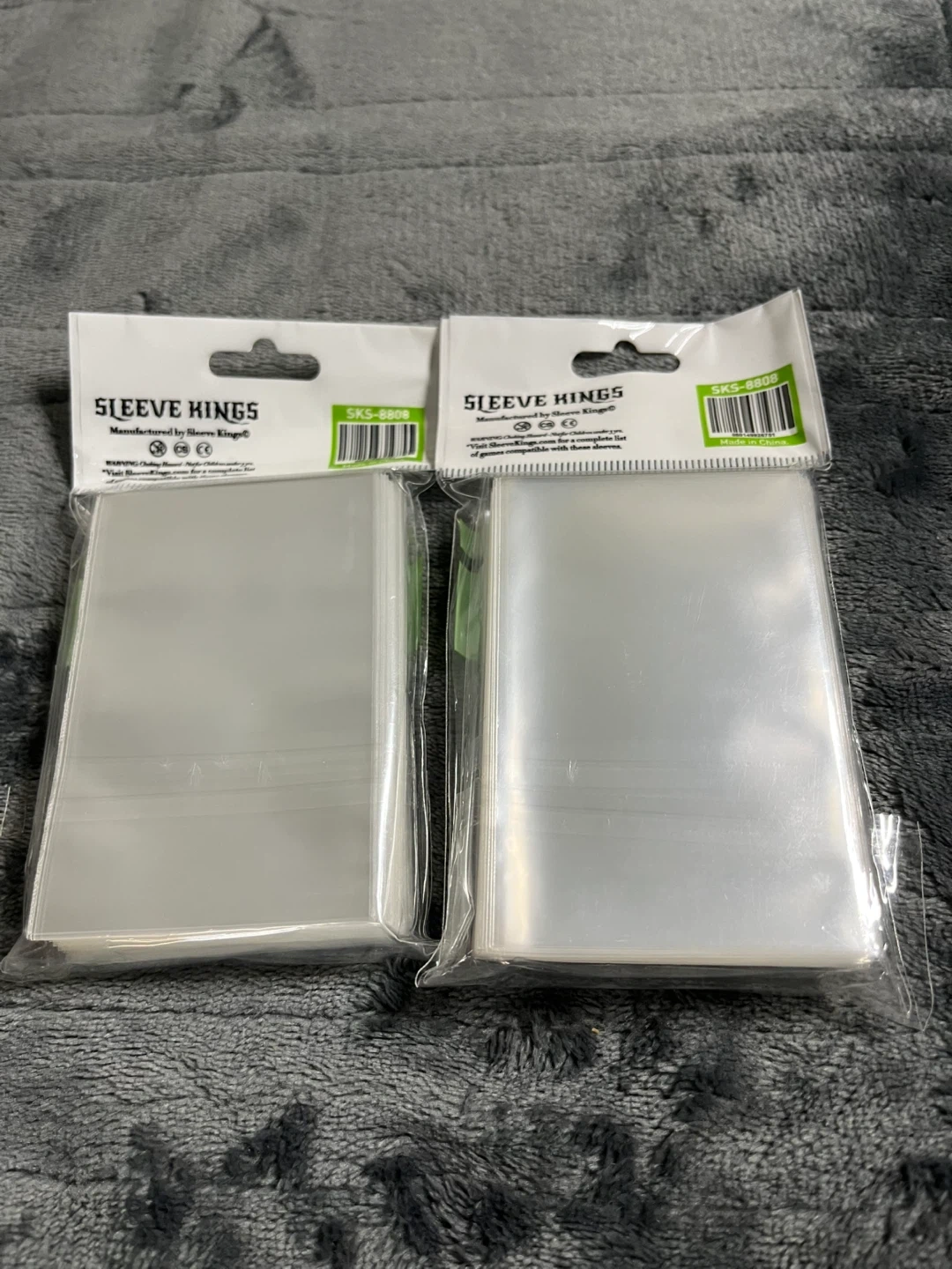 I'm selling two packs of Sleeve Kings card sleeves, still sealed in their original packaging! Each pack contains 110 sleeves. Great for smaller card games such as Uno.