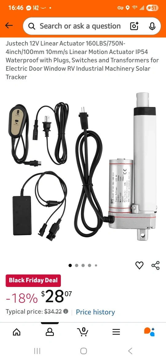 Selling a Justech 12V Linear Actuator. It comes with plugs, switches, and transformers. It's waterproof with an IP54 rating. Great for electric door, window, RV, industrial machinery, and solar tracker applications