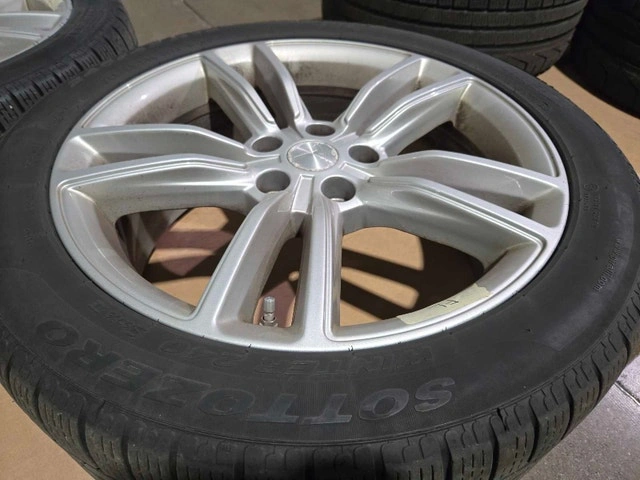These are the winter rims and tires from a 2015 Tesla Model S that was traded in. Could also be used for Summer/all season tires. Wheels are in good condition, just the center caps could be replaced.