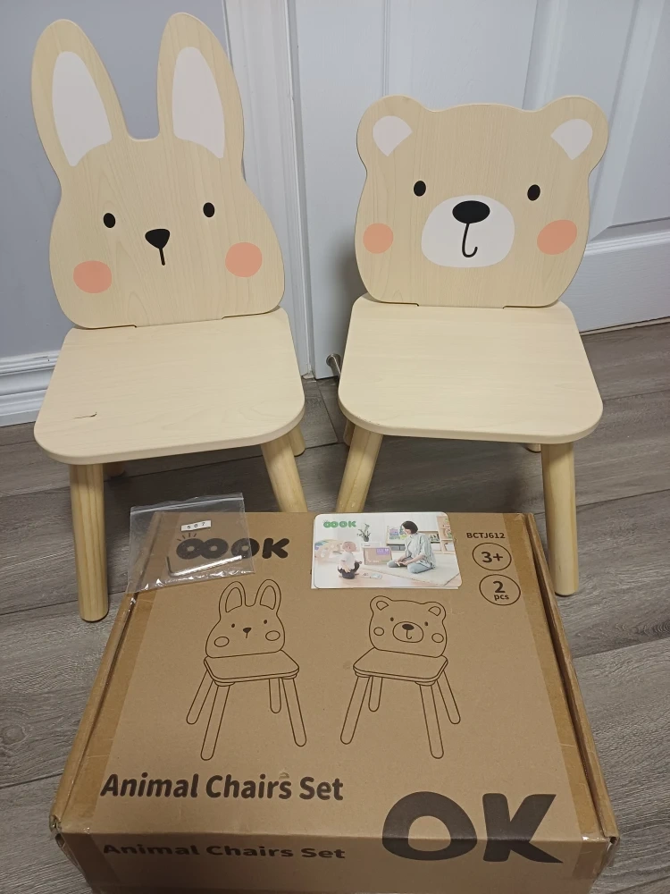 Selling a brand new and super cute set of Oook animal chairs! These are in great condition and come with a bunny and a bear chair. Easy to assemble with manual instruction and complete set of tools.