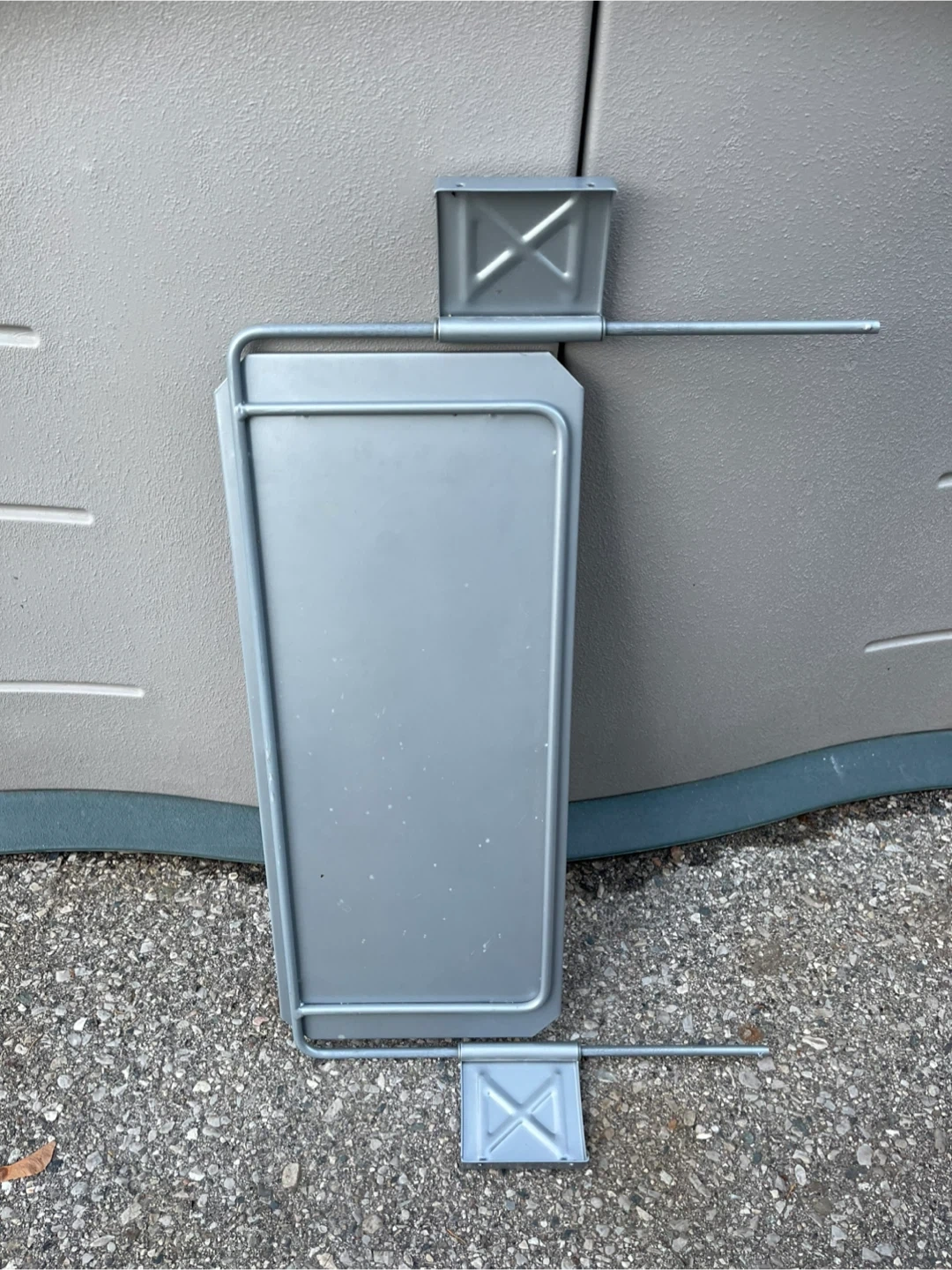 Selling a grey metal keyboard shelf. It's in good condition and ready for a new home! Screws to the underside of a desktop.