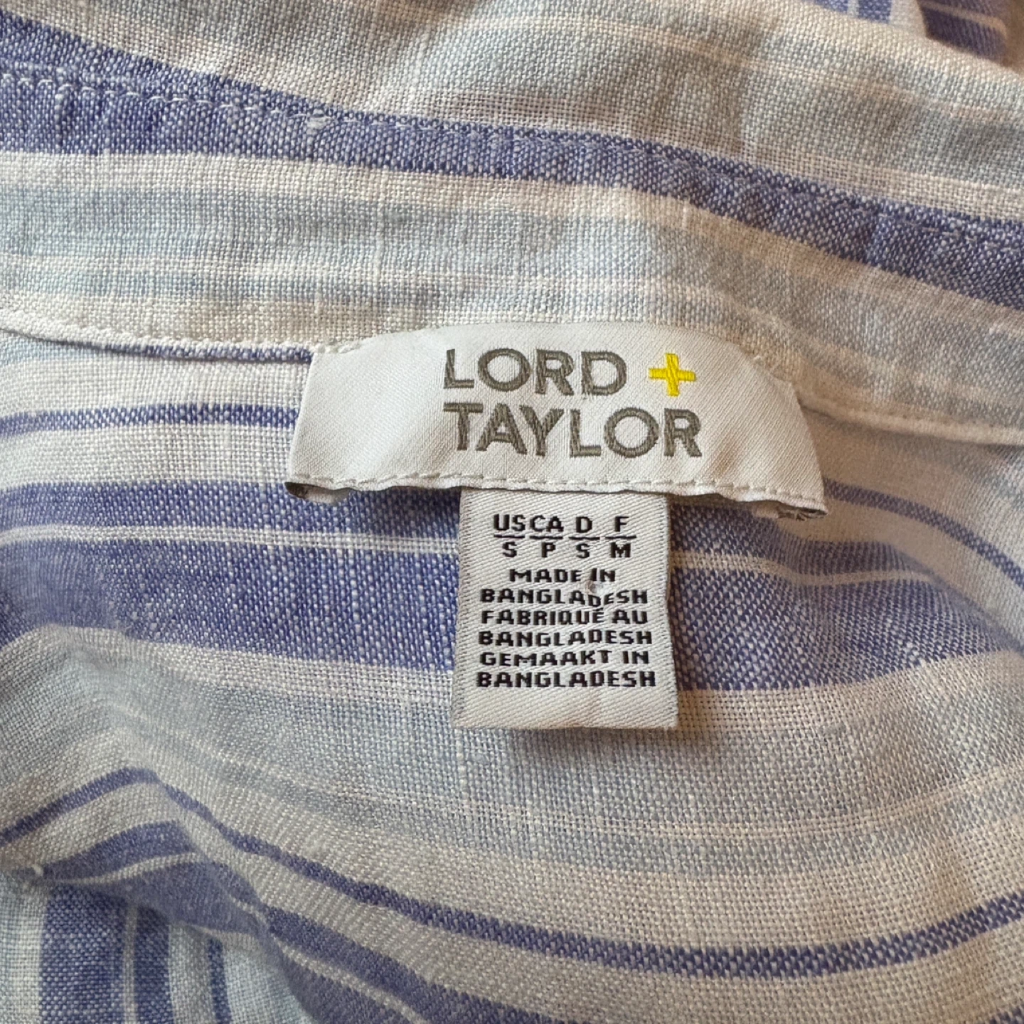Lord & Taylor 100% Linen Striped Purple Blue Shirt Size Small