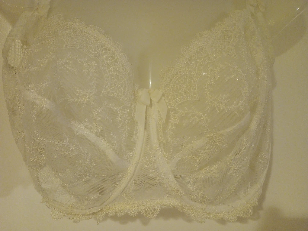 Selling a beautiful white lace bra from Empreinte. It's in great condition and ready for a new home! Like new except a minute amount of sweater fuzz got stuck to the lace.