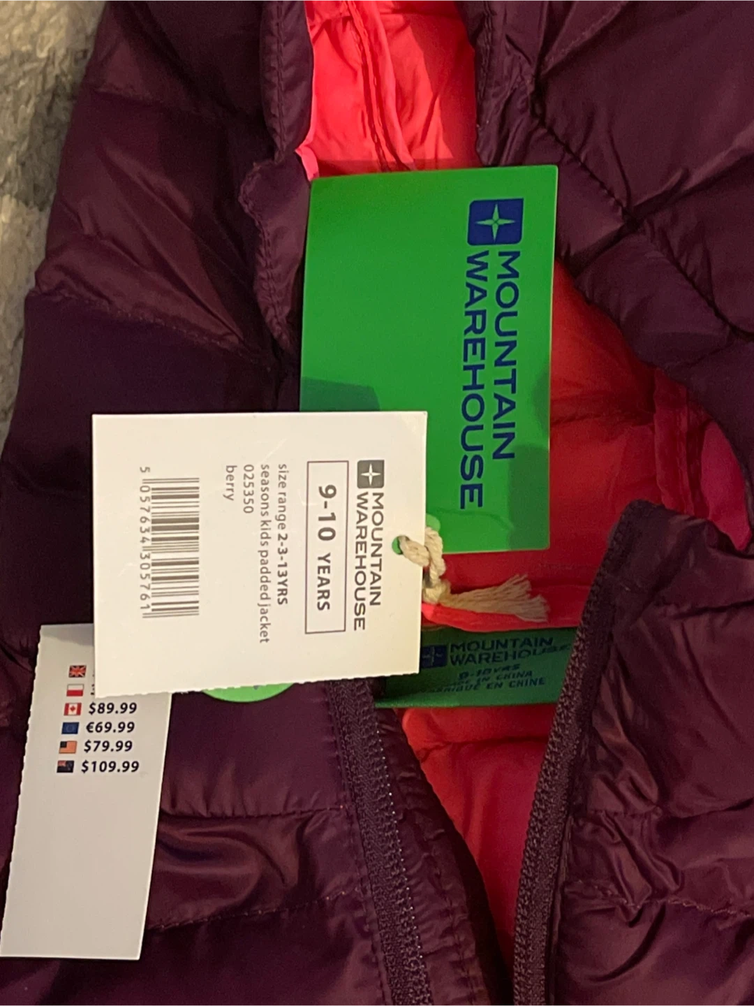 Selling a Mountain Warehouse kids padded jacket, perfect for the cooler seasons! Lightweight soft material. It's a size 9-10 years and comes in a lovely berry colour. This jacket is designed for kids aged 9-10 years and is in excellent condition!