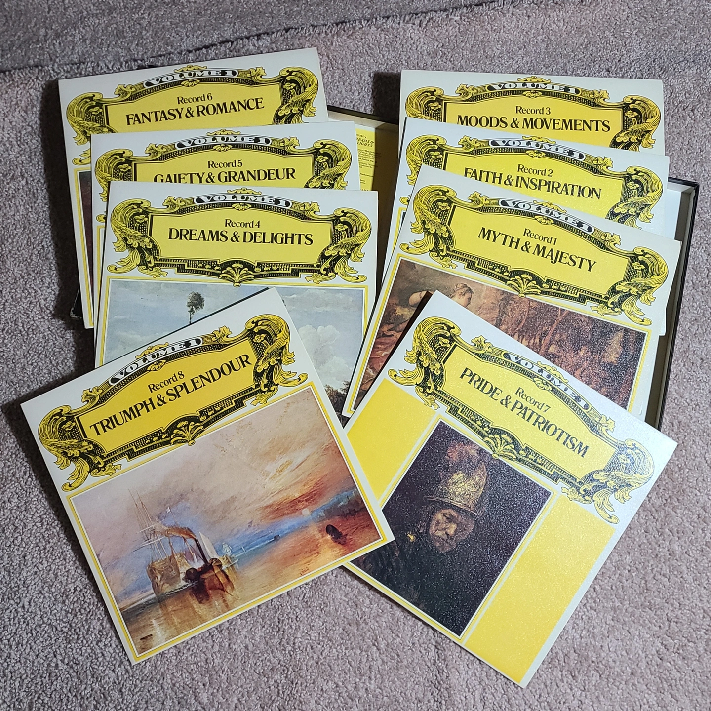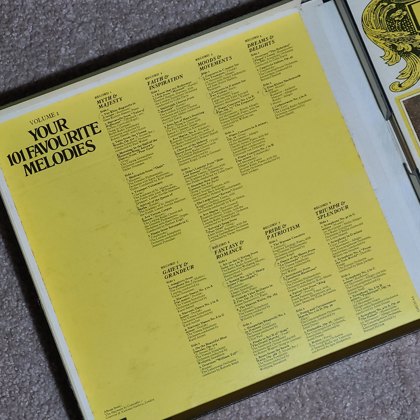 Your 101 Favourite Melodies (Volume 1 & 2) Vinyl box set, PLUS x3 bonus vinyl: - Rare Vinyl, 1970s UK 64-track nine vinyl LP set - Artist: Various-Classical & Orchestral - Record Label: Reader's Digest - Country of Origin: United Kingdom (UK) - x2 boxes PLUS x3 extra bonus vinyl - x8 vinyl in each box PLUS bonus vinyl (x19 vinyl in total) - Housed in a flip-top box - The box shows minor wear, and the vinyls are like-new - Refer to the pictures for Tracklist and Extra Information