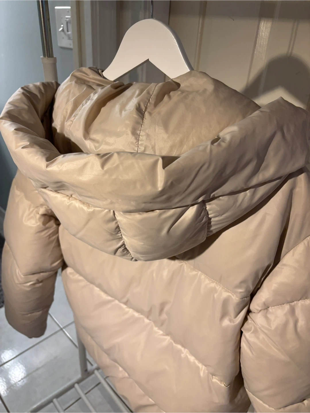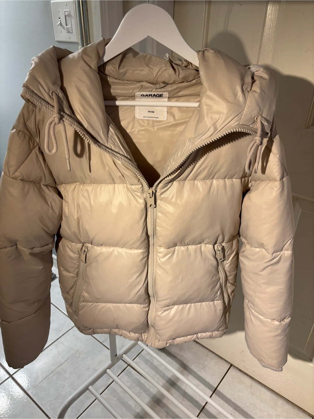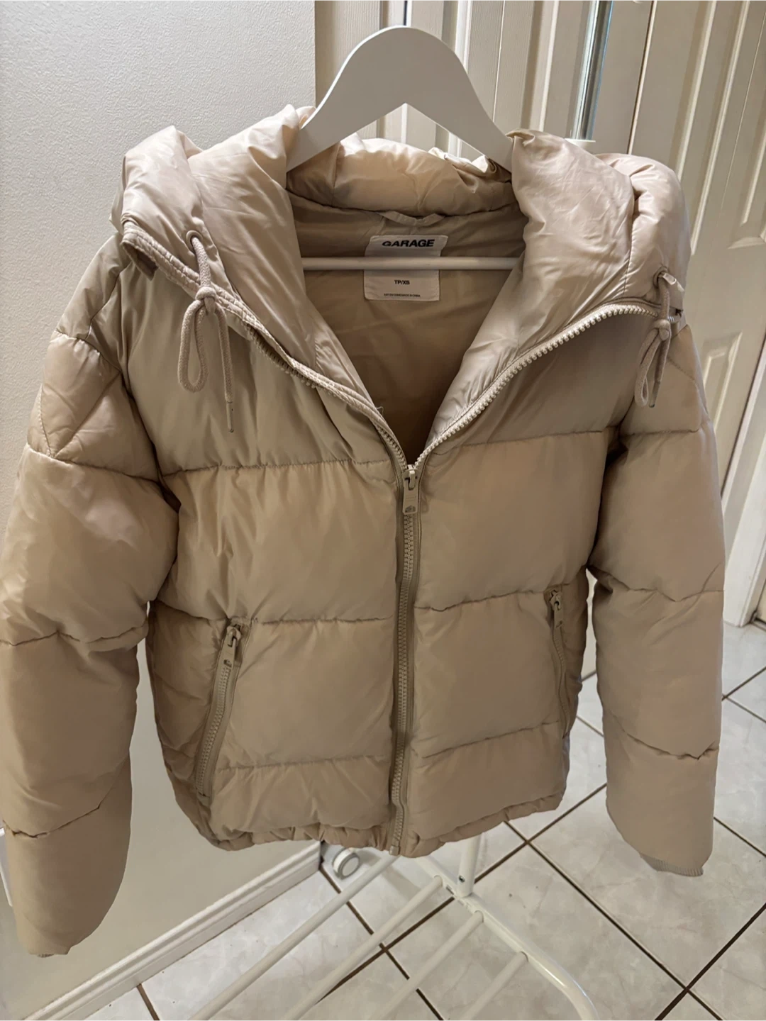 Stay warm and stylish this season with this women’s cream-coloured “Garage” puffer jacket! It has a cozy hood, zippered pockets, and a soft lightweight feel - perfect for everyday wear.
