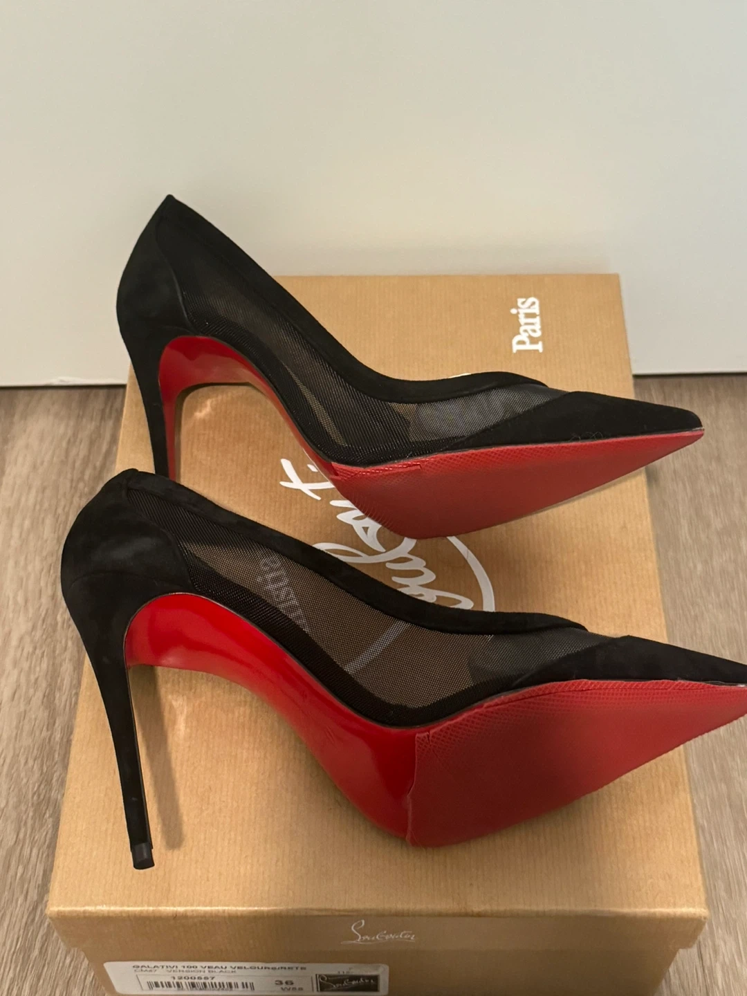 Selling a pair of Christian Louboutin Galativi 100 Veau Velours/Rete heels in black. They are a size 36 and come with the box!