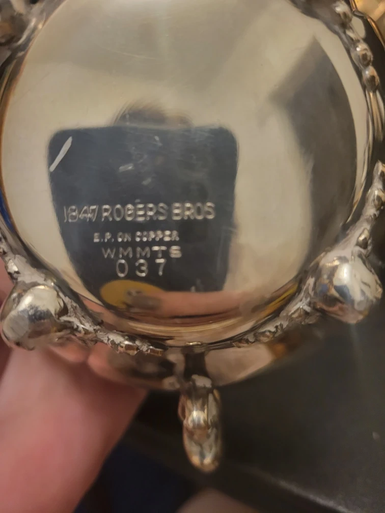 Selling a beautiful silver plated tea set by 1847 Rogers Bros! This set includes a teapot, sugar bowl, creamer, and another smaller teapot. It's marked with 'E.P. on Copper' and 'WMMTS 037'. Perfect for adding a touch of vintage elegance to your tea time. Needs polishing.