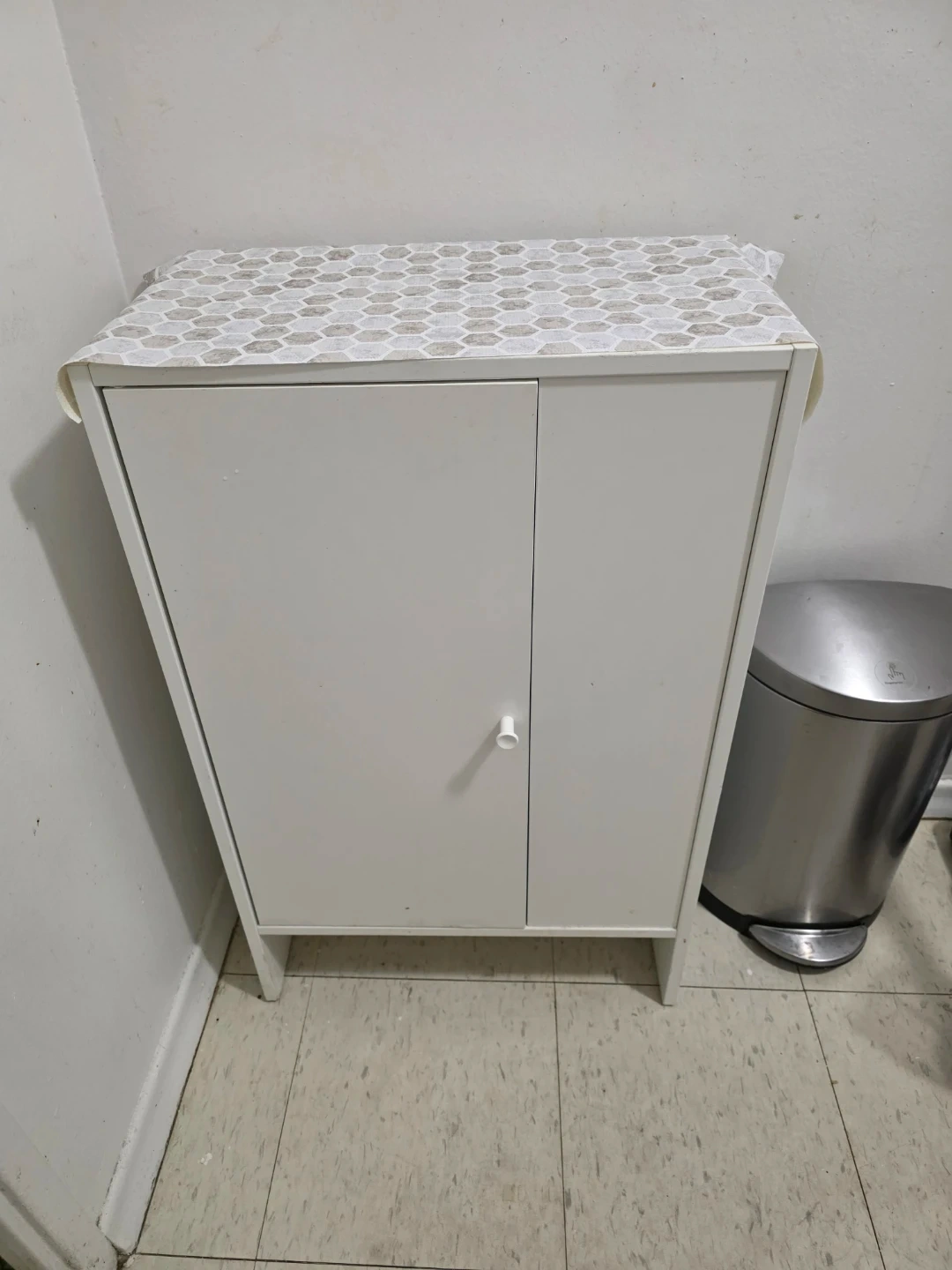 Selling a white cabinet from IKEA. It's in great condition and perfect for extra storage in a small space. It has two doors and one shelf inside
