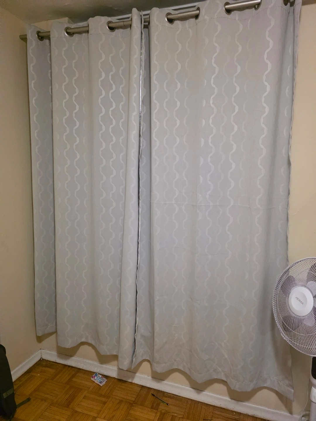 These light grey curtains have a subtle wave pattern that adds a touch of elegance to any room. They're in great condition and ready to hang in your home!