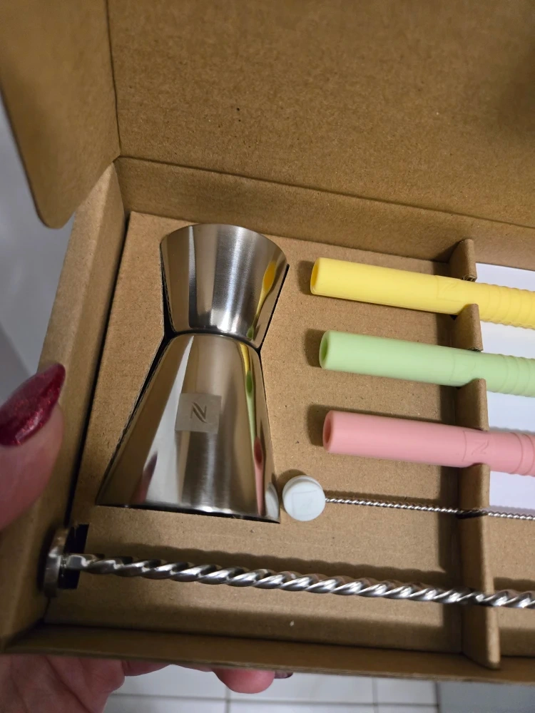 Selling a brand new Nespresso Barista Kit! It includes a jigger, three colourful silicone straws, a cleaning brush, a stirring spoon, and a recipe kit. The box is included!