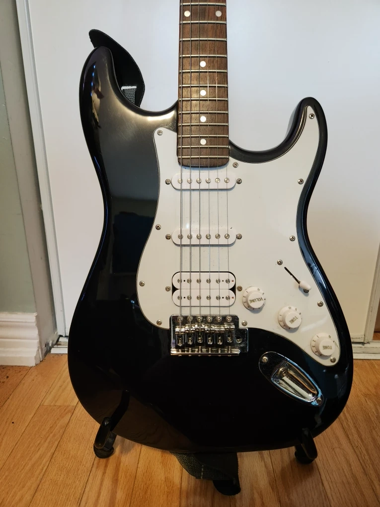 Selling a Mansfield electric guitar in black and white (lightly used)