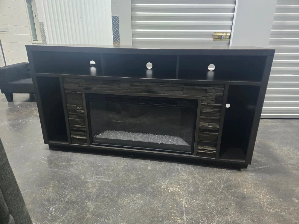 Selling a stylish Muskoka fireplace TV stand! It's perfect for cozying up any living space. The stand features a built-in electric fireplace with realistic flame effects. It also provides ample storage for your media devices and accessories. The stone accents and rustic finish add a touch of warmth and charm to your home!