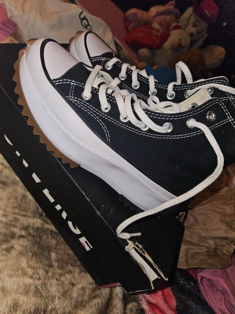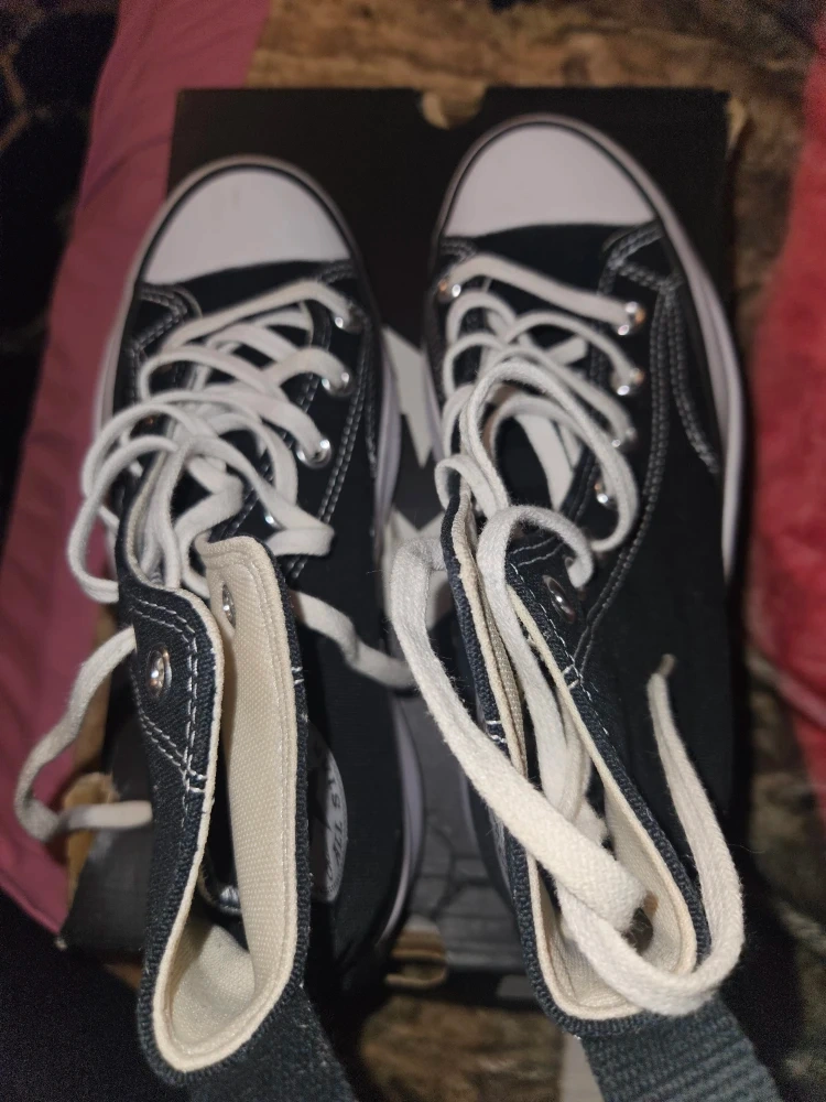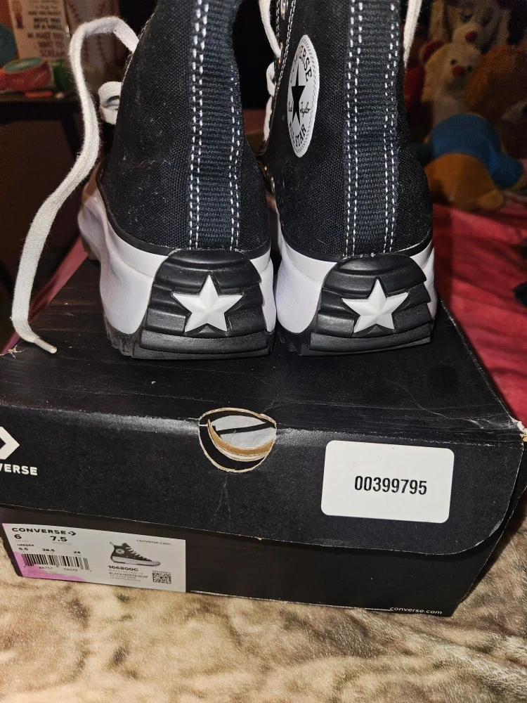Selling a pair of Converse Run Star Hike High Top sneakers in black, size 7.5. They come with the original box! They are stylish and comfortable shoes ready for a new home . Worn a few times.
