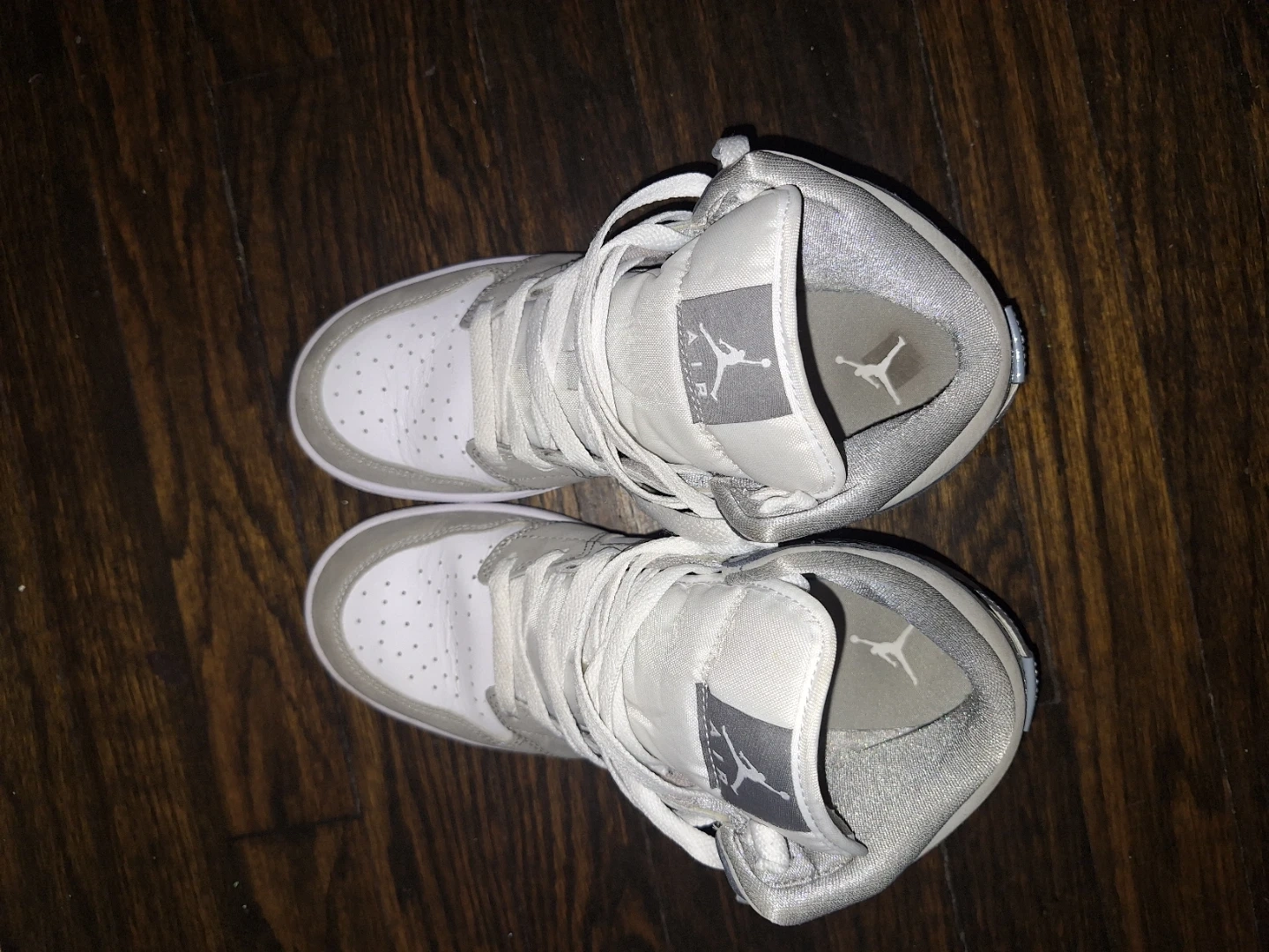 Selling a pair of Air Jordan 1 Mid SE in Particle Grey. They are in great condition and ready for a new home! These stylish sneakers are perfect for everyday wear or for hitting the court. Don't miss out on this classic design!