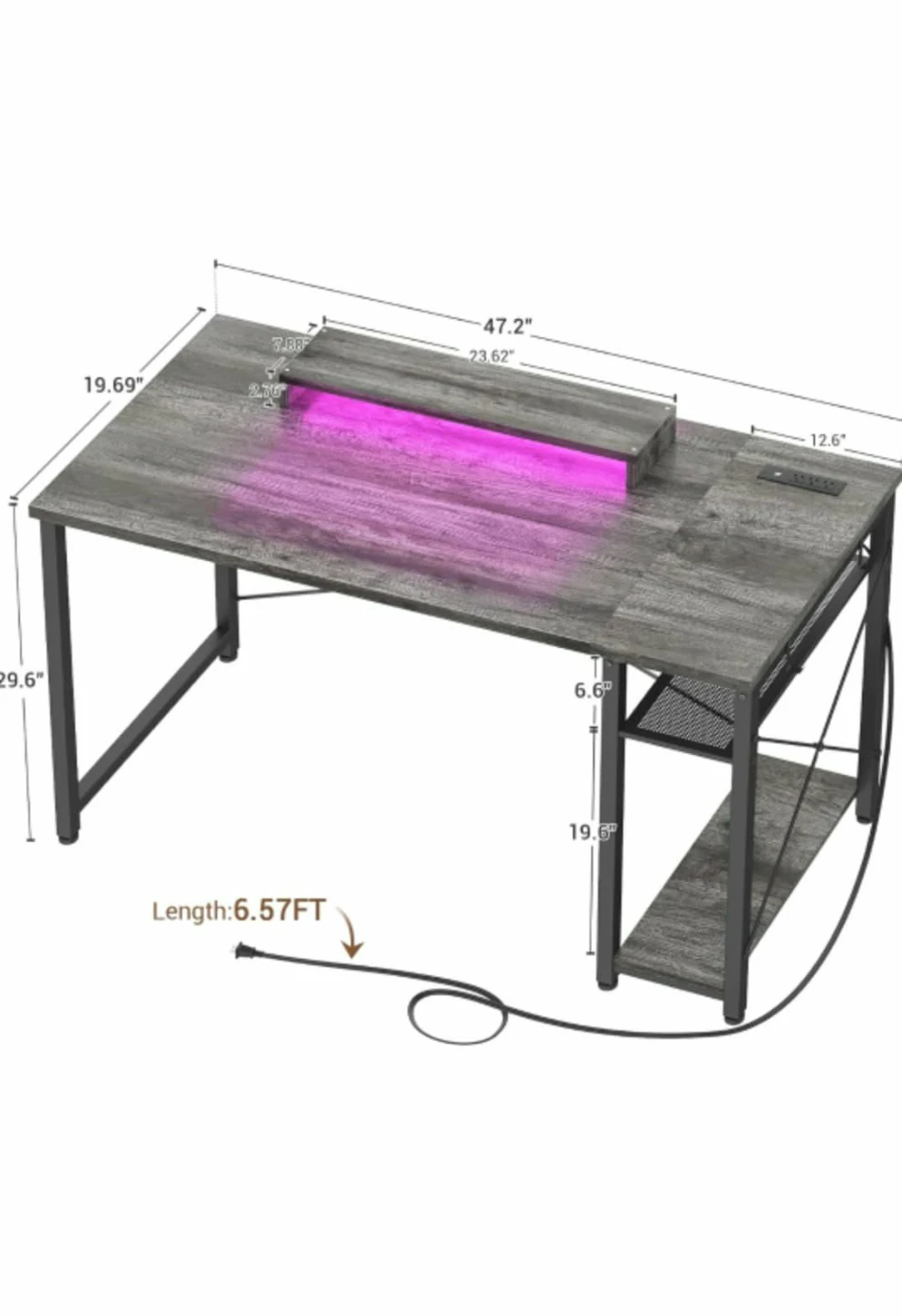 Selling a grey wooden desk! It features built-in power outlets and USB ports, super handy for keeping everything plugged in and organized. The desk is in good condition and comes disassembled in a box for easy transport.