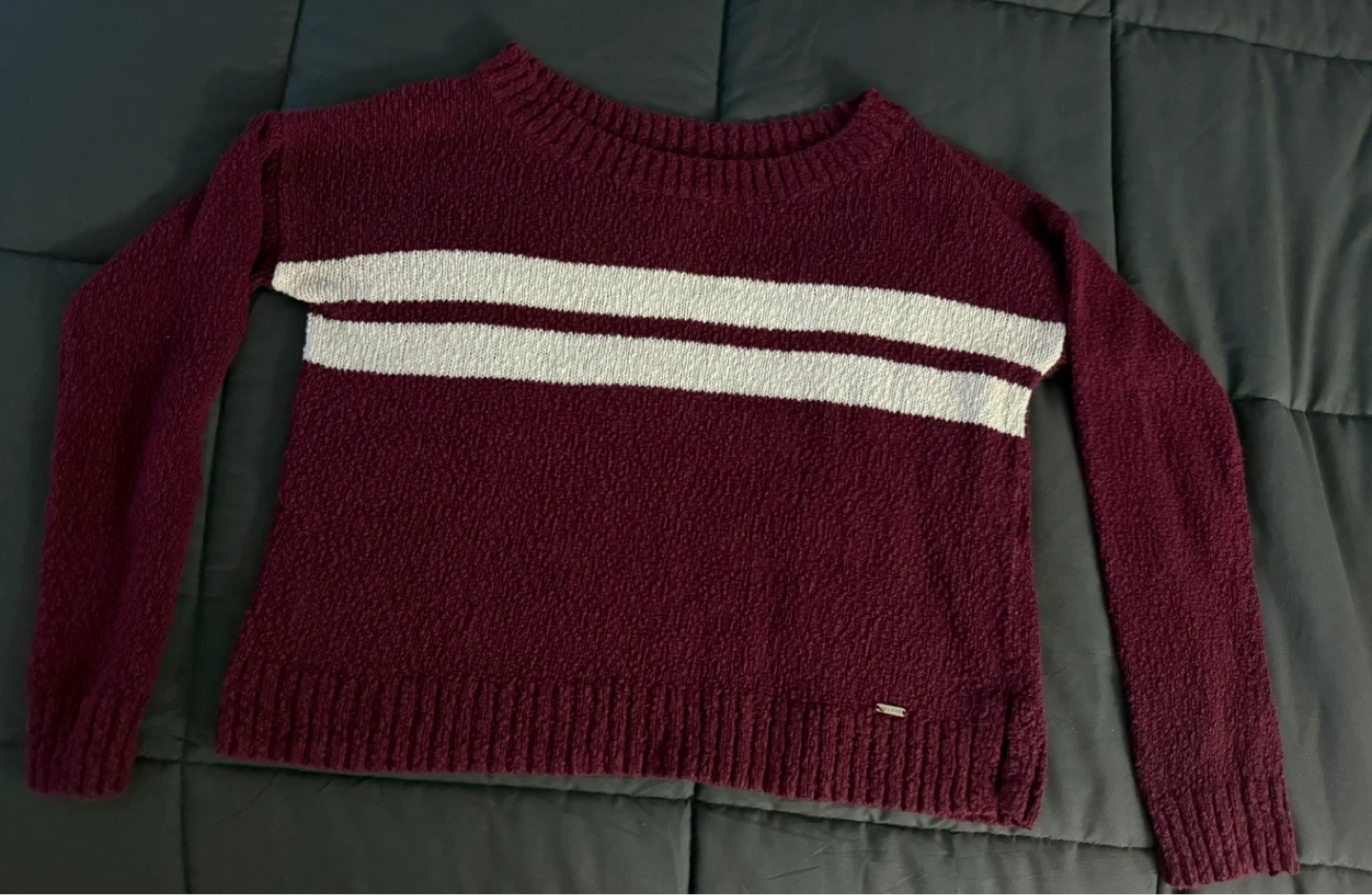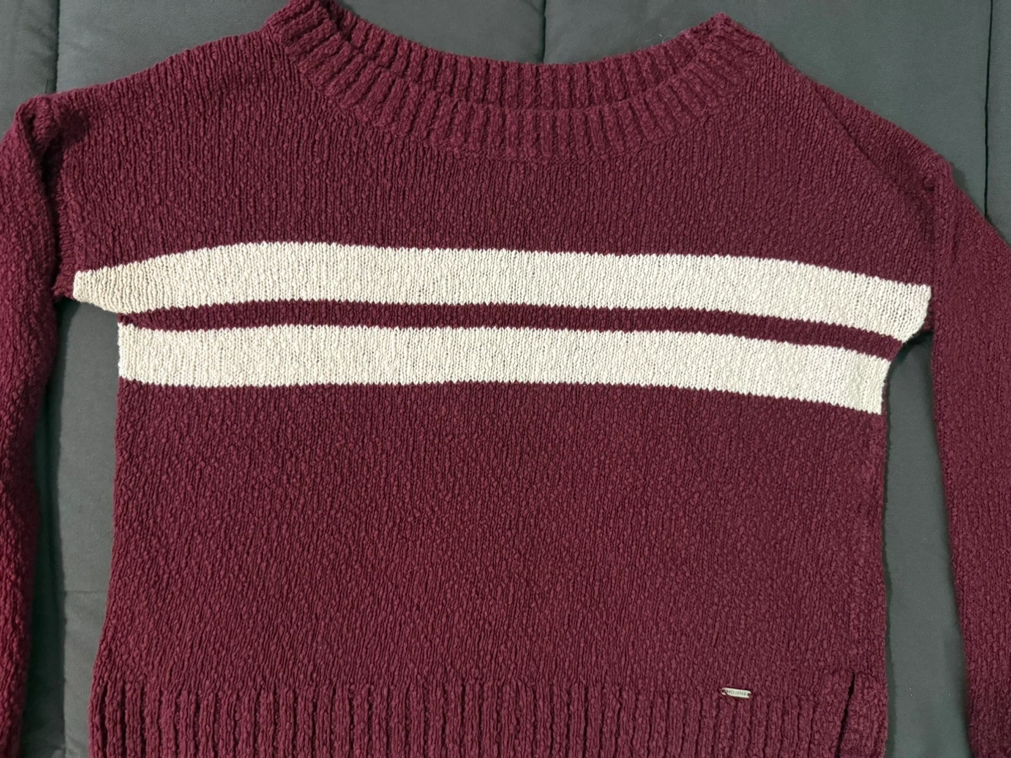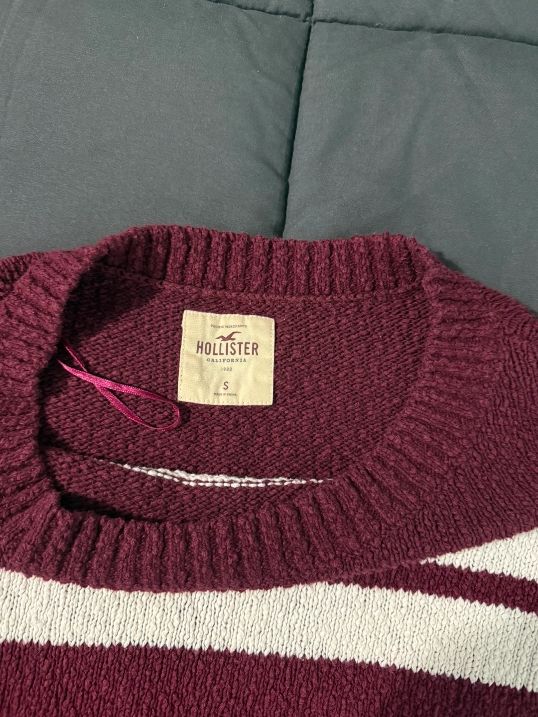 Selling a Hollister sweater in size small! It's a burgundy colour with a white stripe across the chest. Perfect for layering or wearing on its own