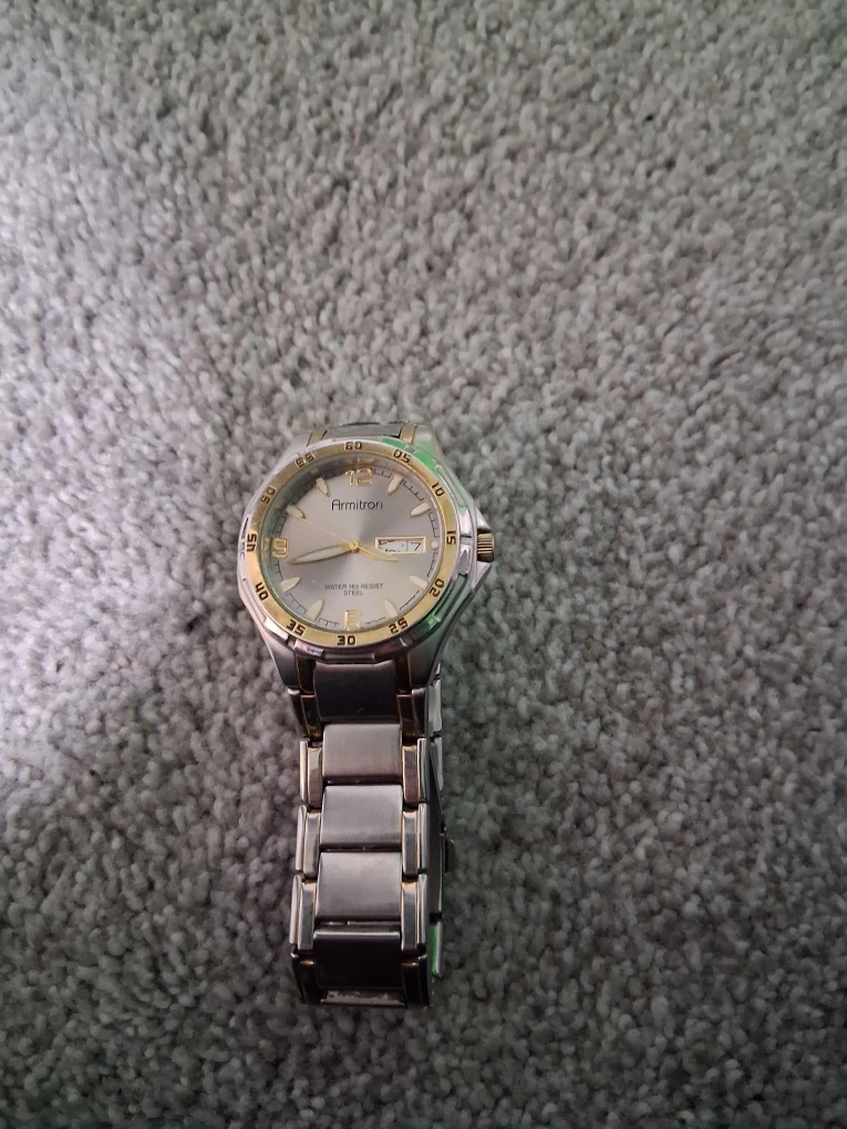 Selling a used Armitron men's watch. It's made of stainless steel and is water resistant. A great everyday watch! Pretty good condition. Will sell for 110 dollars new