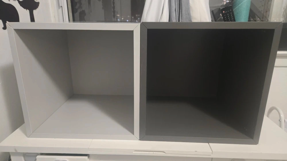 Selling two IKEA Eket cube shelves! One is grey and the other is light grey. They're in great shape and ready to add some storage to your space