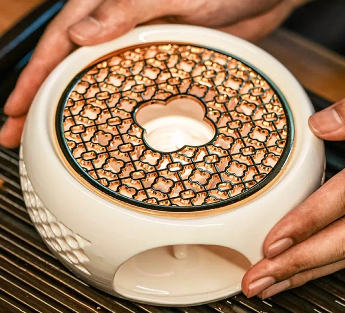 Brand New-Tea Warmer with Teapot, Spoon, Ceramic & Zinc Alloy
