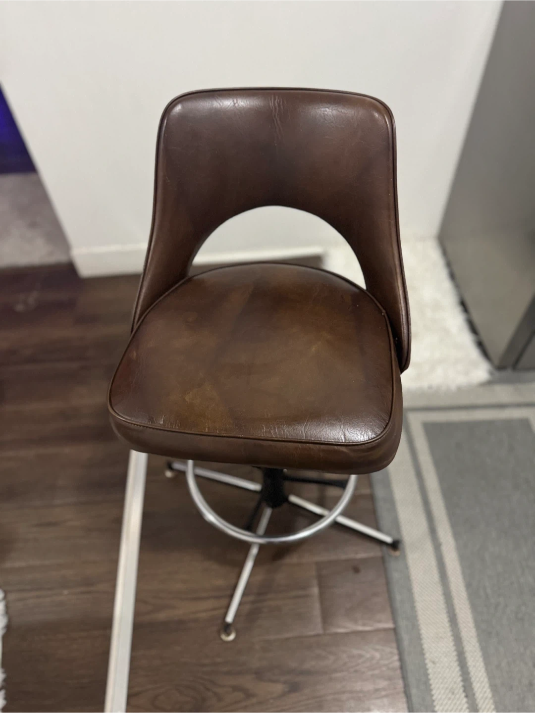 Selling a brown swivel bar stool. It's in great shape and would be a nice addition to any kitchen or bar area. The stool has a padded seat and a sturdy chrome base