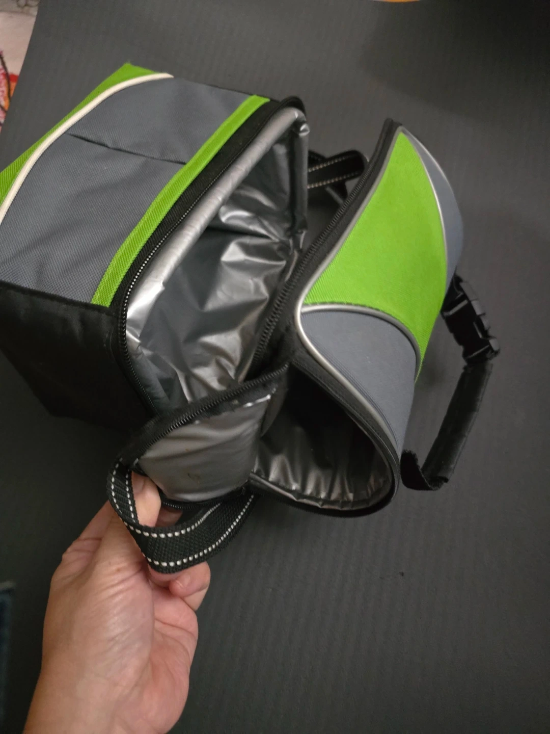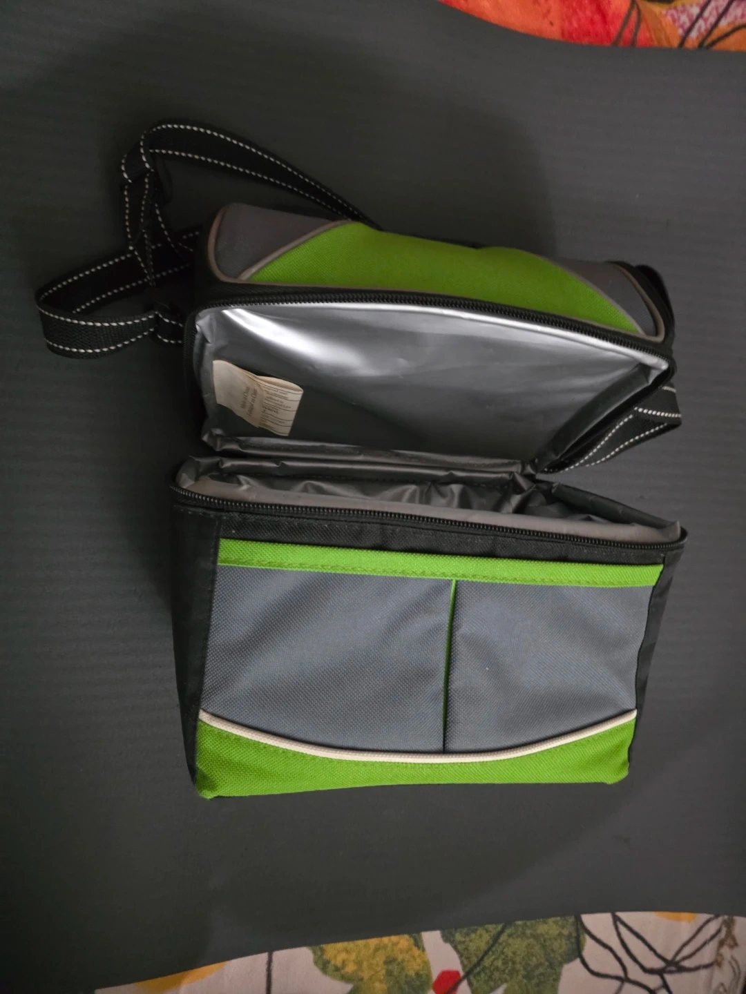 Selling a handy insulated lunch bag in great condition! It's perfect for keeping your lunch cool and fresh. The bag is a combination of green and grey, making it stylish and functional for everyday use.