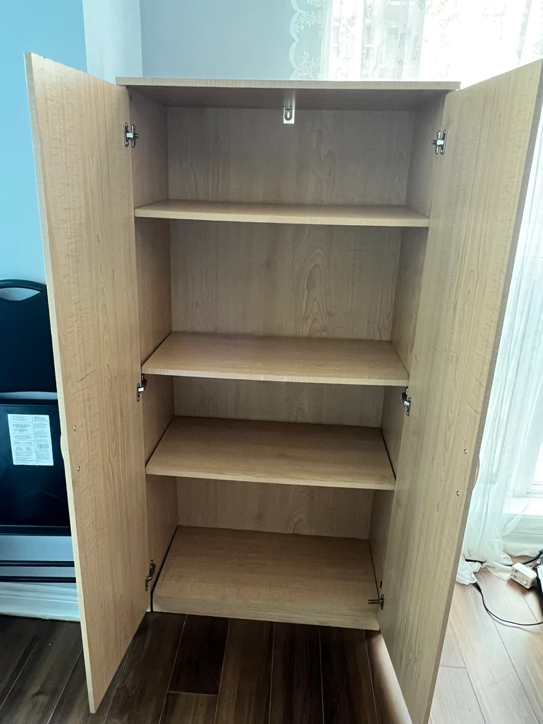 Selling a light pine wood Ikea wardrobe in great condition! It has huge storage. The wardrobe has a simple and clean design that will fit in with any decor. It features multiple shelves, providing ample space for your clothes and other belongings.
