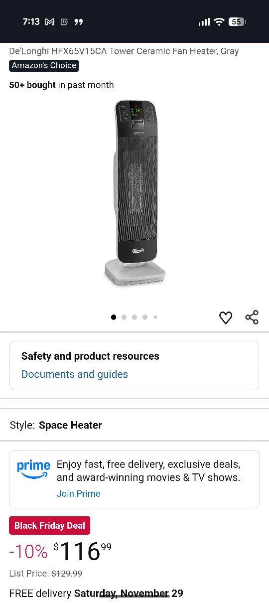 DeLonghi HFX65V15CA Ceramic Tower Heater BRAND NEW!
