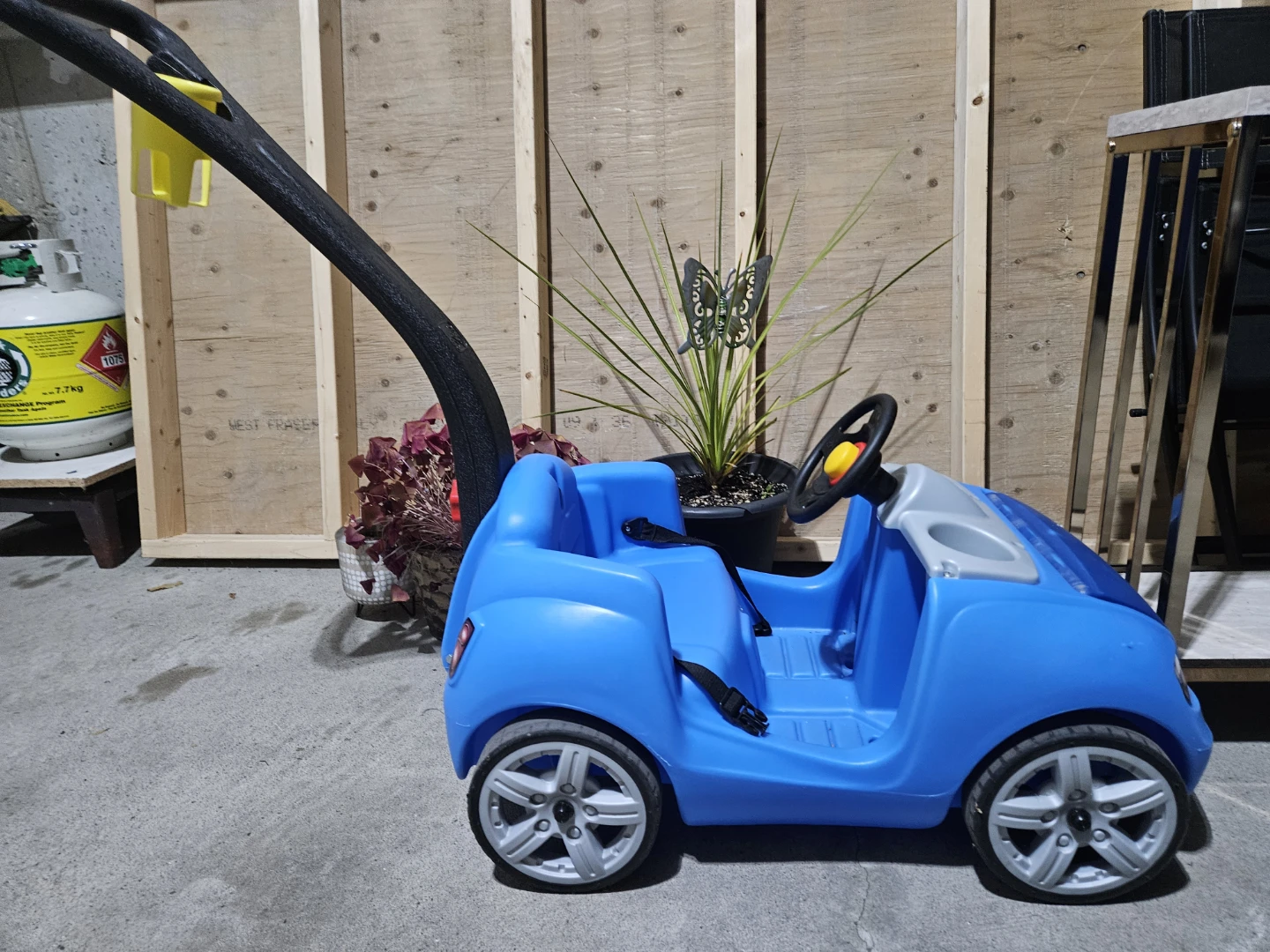 Selling a Step2 Push Around Buggy in blue. It's perfect for toddlers who are learning to walk and explore! The buggy features a comfortable seat, a steering wheel, and a push handle for parents. It's in good condition and ready for a new home
