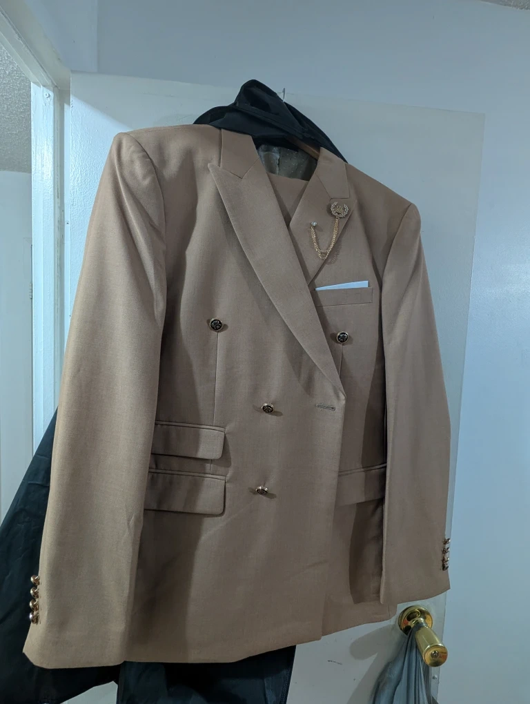 Selling brand new Daro-Uomo Exclusive Suit in size XXL. It's a stylish slim fit and the colour is a nice neutral tone. Perfect for any formal occasion!