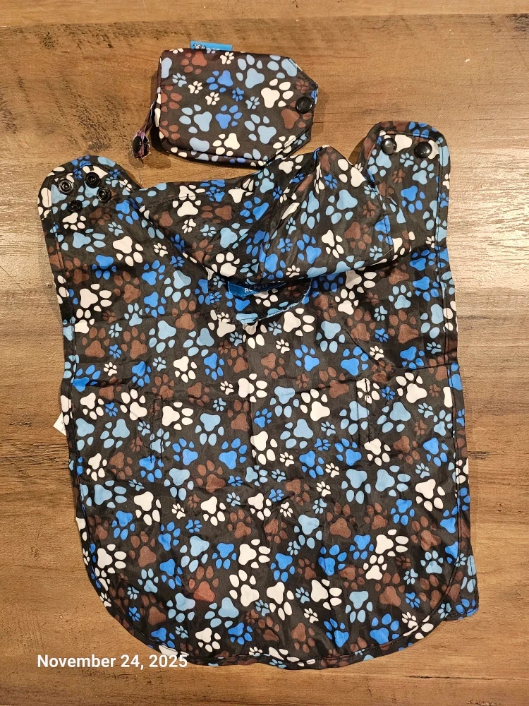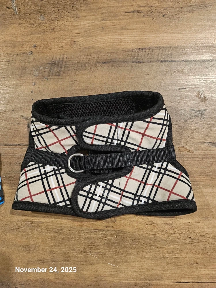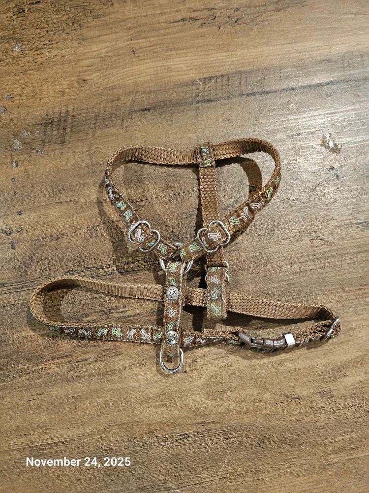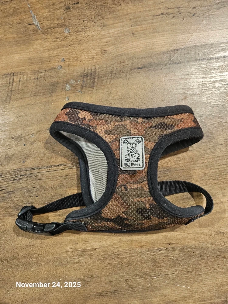 I have a selection of RC Pet dog harnesses and a dog raincoat for sale! They're all in great shape and ready for your furry friend. I also have a brown dog harness with a bone pattern.