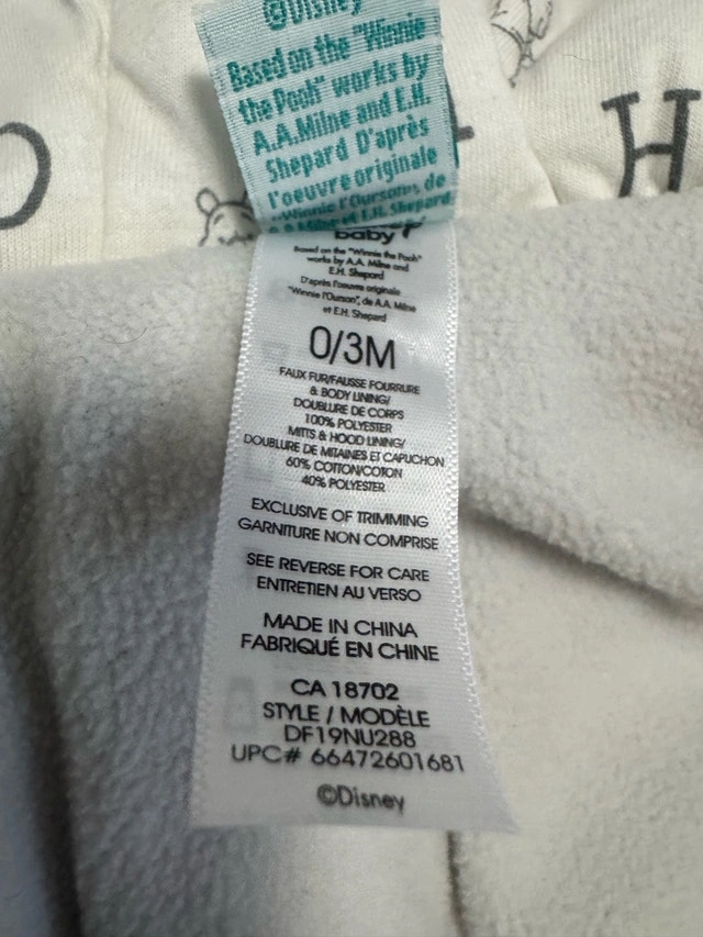Like New Winnie the Pooh 0-3Month Winter Snowsuit Pick up in the lobby of my condo Located in Scarborough at Finch and McCowan