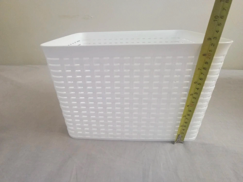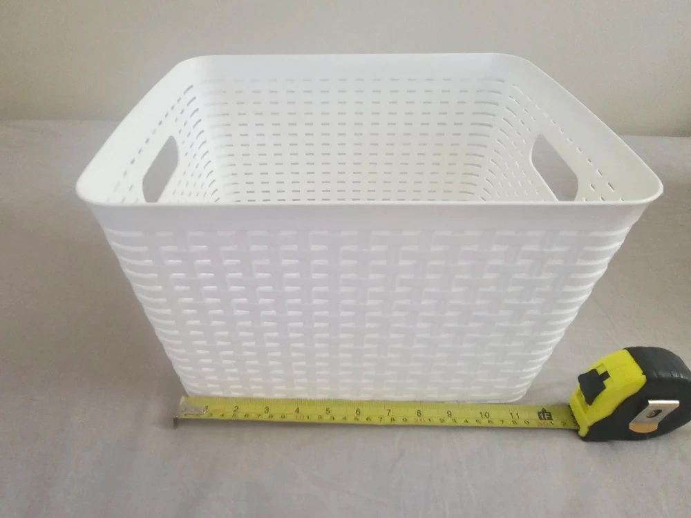 Selling a set of two white woven storage baskets. They're in great shape and perfect for organizing your space. The baskets measure approximately 10 inches in height and 11 inches in width.