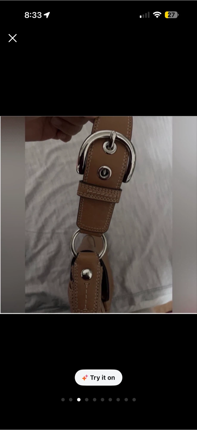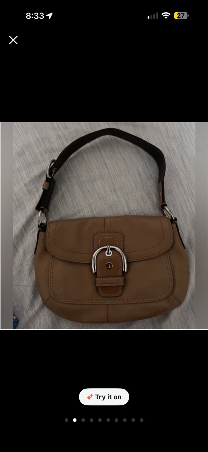 Selling a cute Coach leather shoulder bag! It's in great condition and ready for a new home. The bag features a stylish buckle detail and a comfortable shoulder strap. Perfect for everyday use!