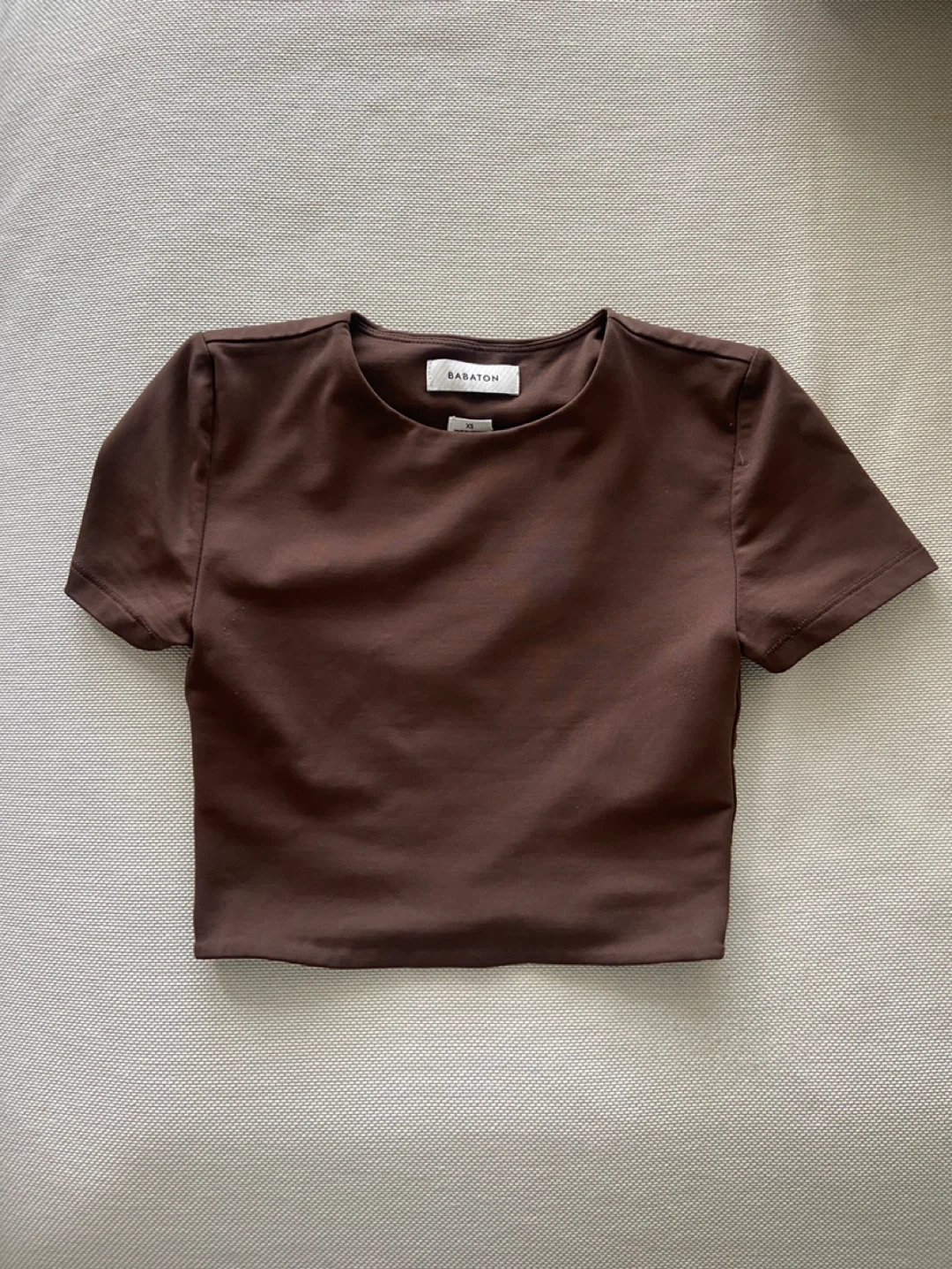 Selling a cute brown t-shirt from Aritzia's Babaton line! It's a size XS and in great condition. Perfect for a casual look or dressing up!