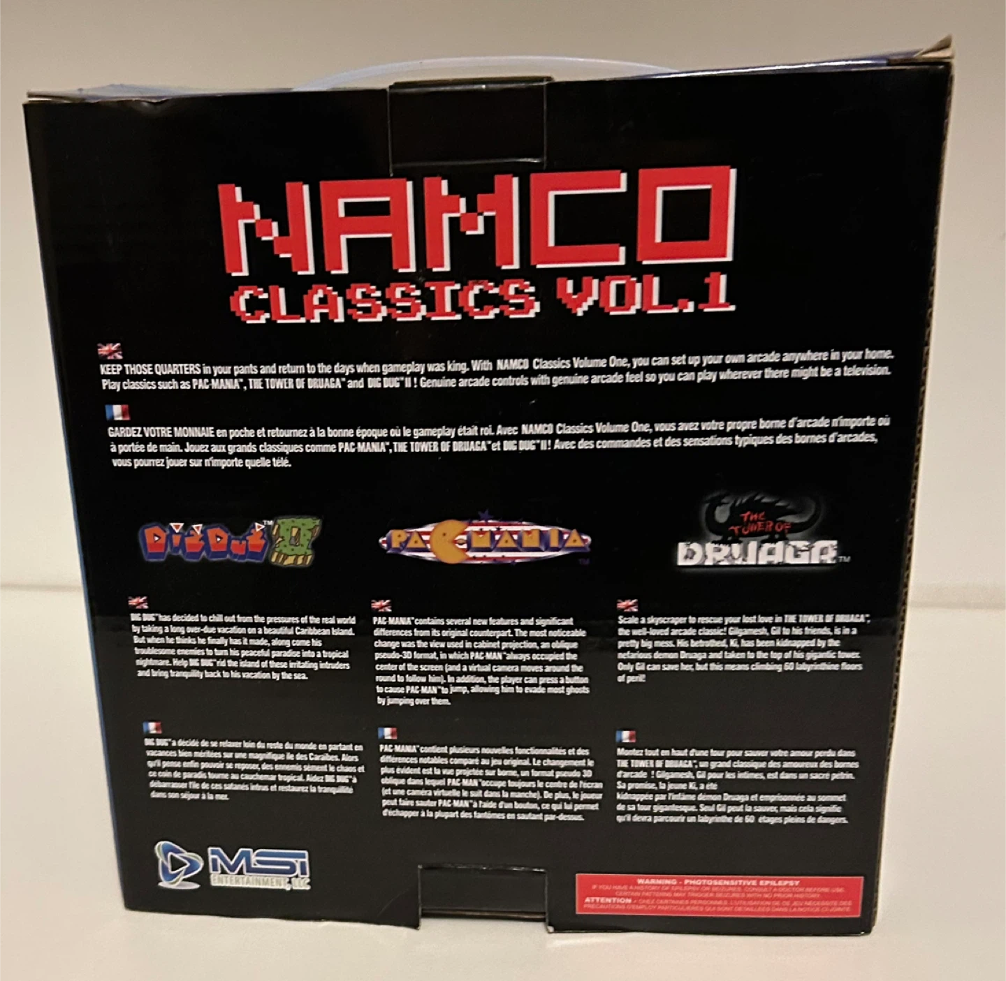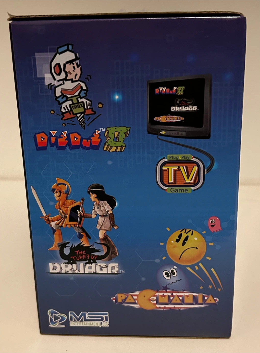 Relive the arcade days with this Namco Classics Volume One plug-and-play TV game! It lets you enjoy classics like Pac-Man, Tower of Druaga, and Dig Dug right on your TV. Just plug it in and you're ready to play!