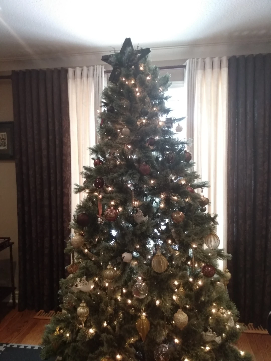 A beautiful rustic wooden star wreath, perfect for adding a touch of charm to your home decor. It features a dark brown wooden star adorned with decorative elements like a pinecone, faux leaves, and a small bell. Great for hanging on a door or wall!