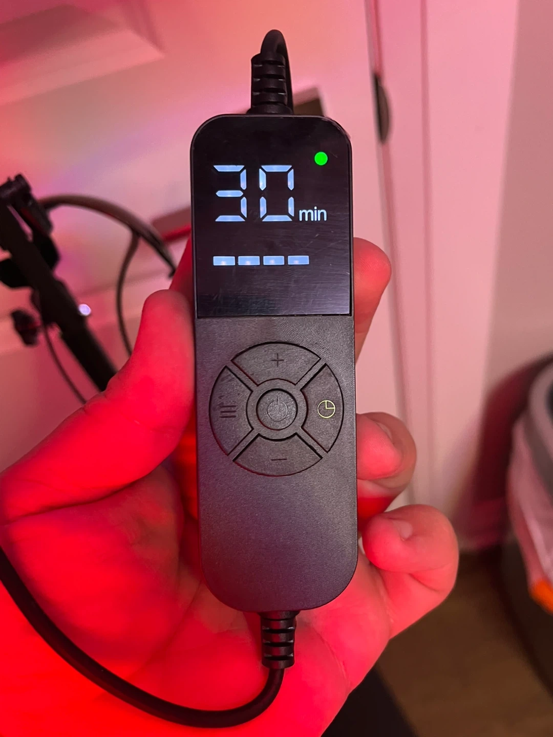 This is a red light therapy lamp. It uses a combination of 660nm (bright) and 850nm (invisible) LEDs. The controller allows you to set the timer for your treatment. Come with protective glasses. Used post-surgery. Works wonderfully! $100 OBO