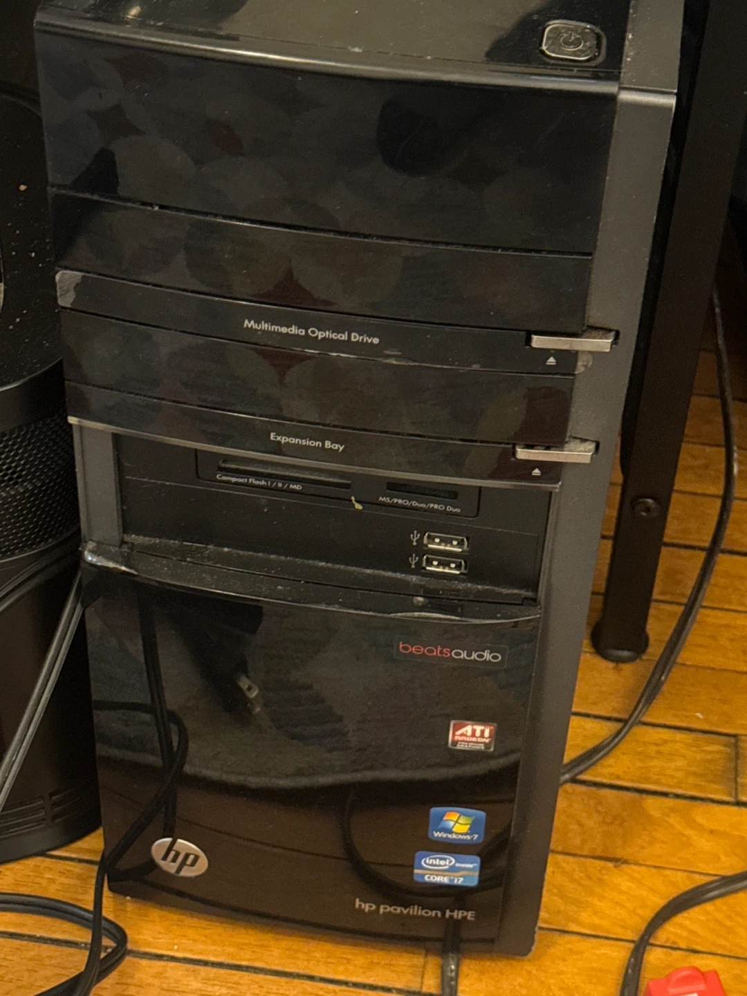 Selling an HP Pavilion HPE desktop PC. It has a multimedia optical drive and an expansion bay. It also features beatsaudio. It's running Windows 7 and has an Intel Core i7 processor
